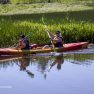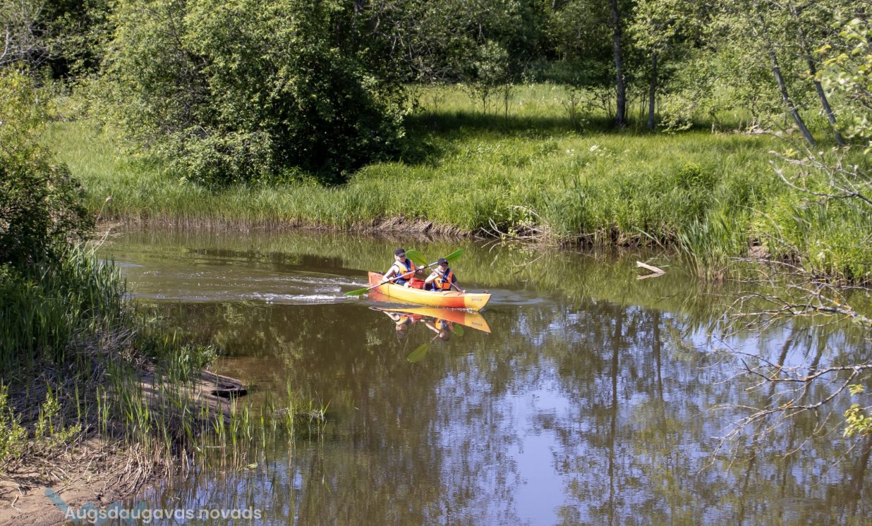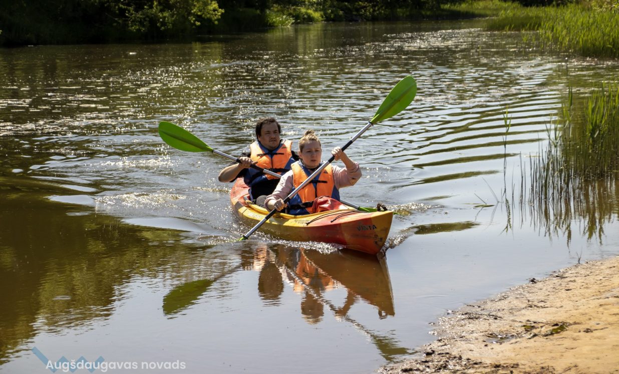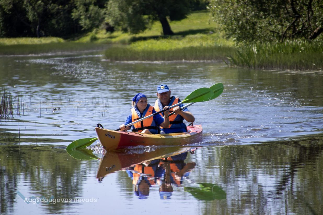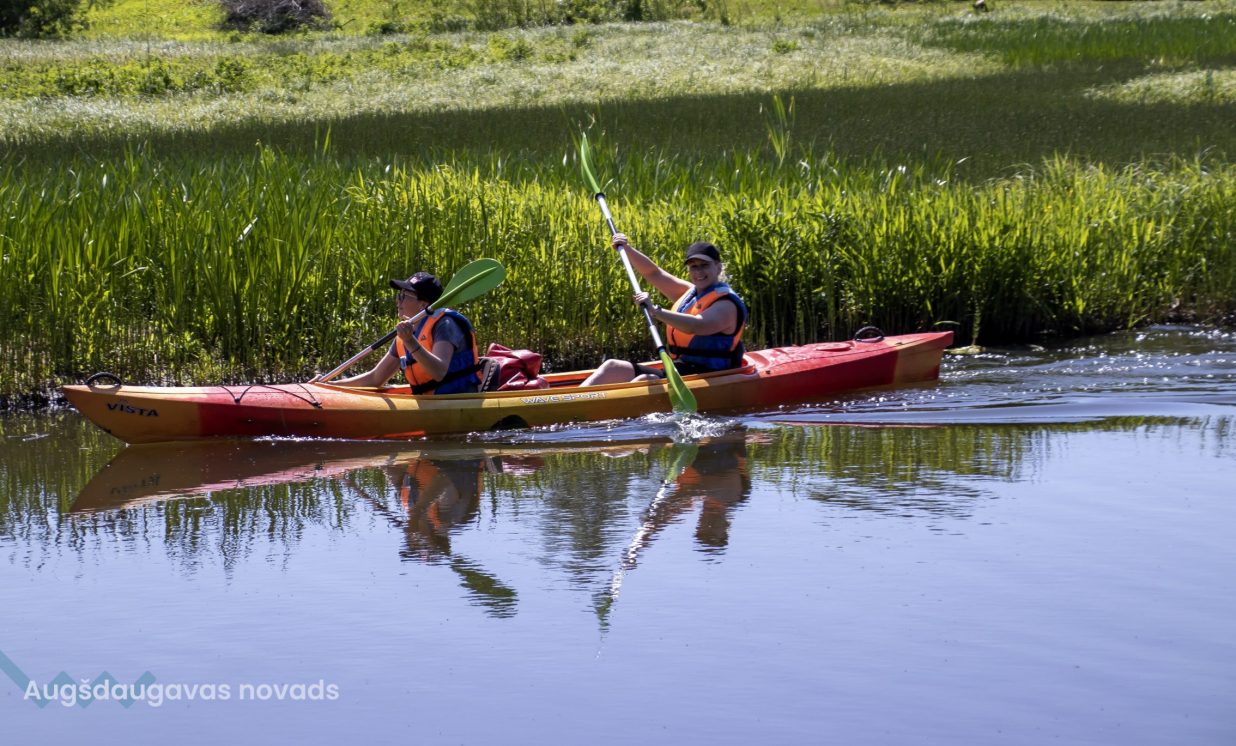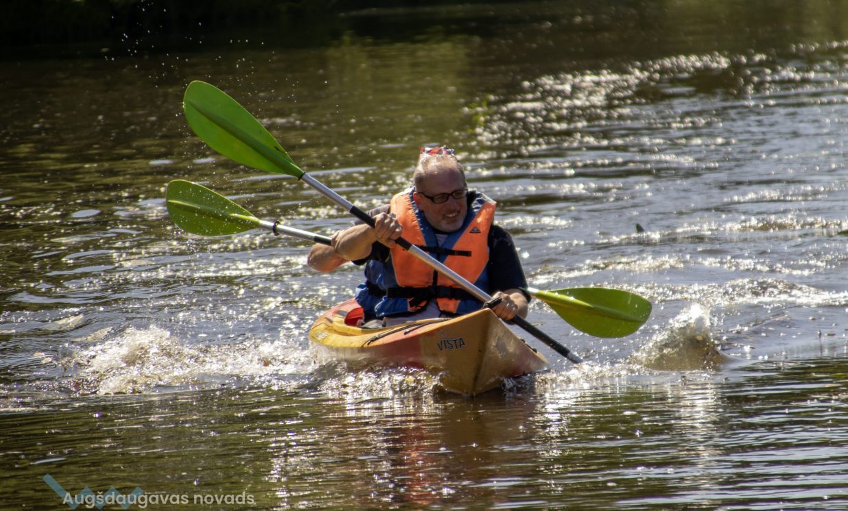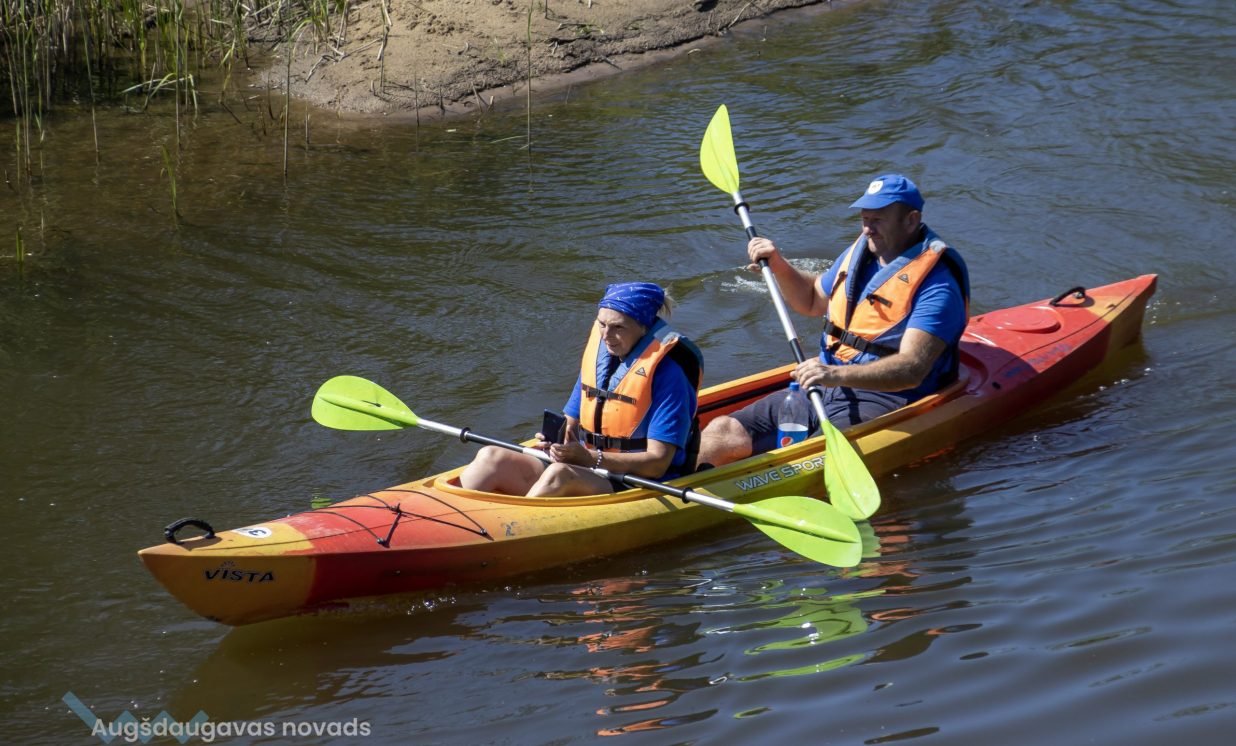 Pirms kāpšanas kajakos visi dalībnieki iesildījās, izvingrināja rokas, kājas, noklausījās drošības instruktāžas un devās ceļā.