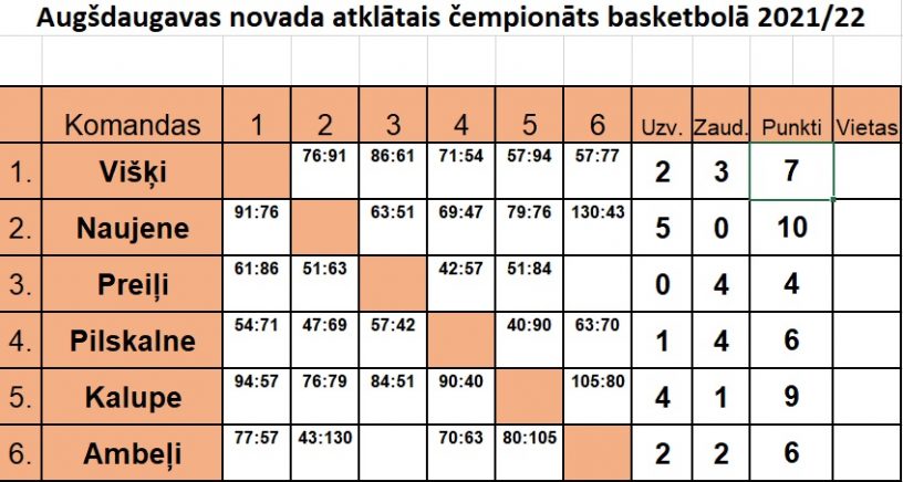 30. janvārī notika Augšdaugavas novada atklātā čempionāta basketbolā kārtējās spēles. Komanda “Višķi” uzvarēja komandu “Pilskalne” ar rezultātu 71:54.