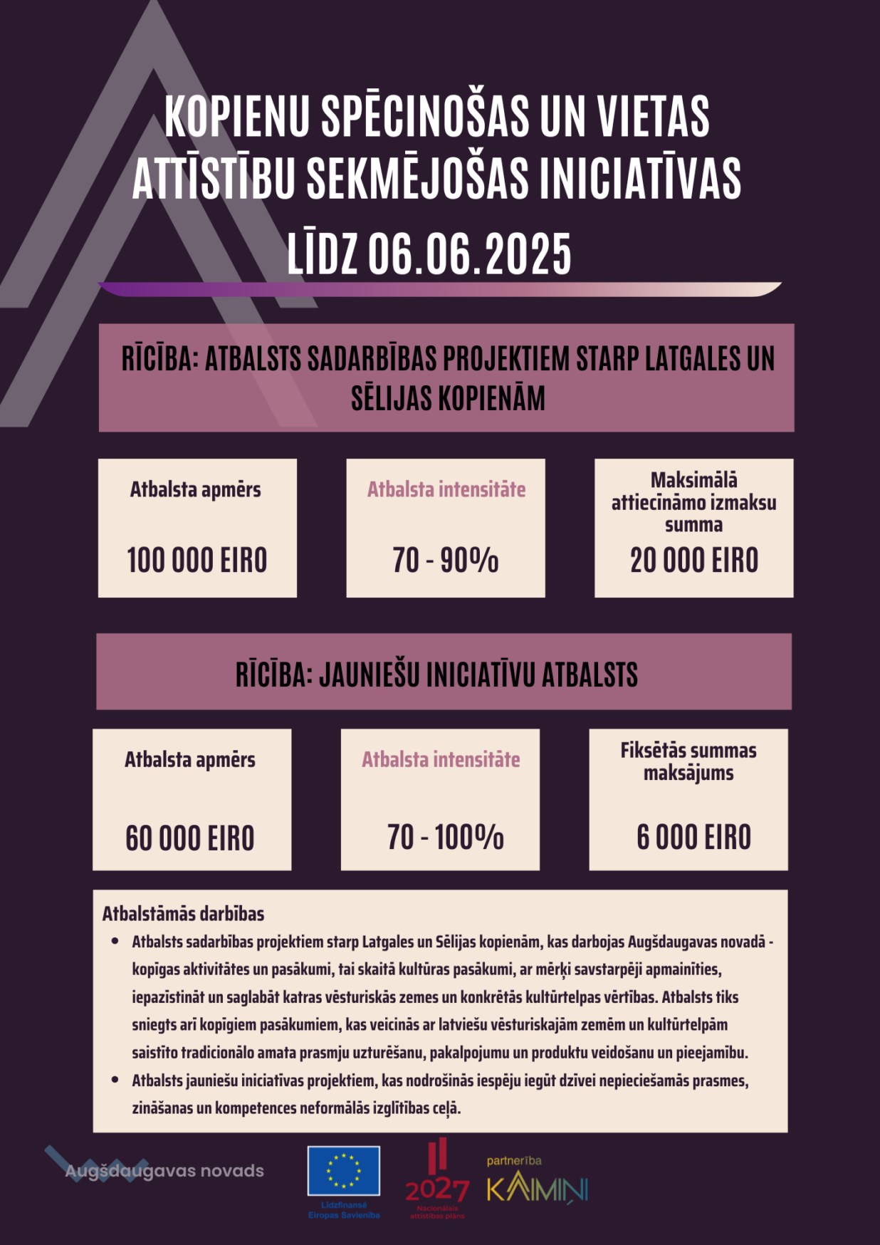 Atbalsts sadarbības projektiem starp Latgales un Sēlijas kopienām. Rīcības ietvaros paredzēts sniegt atbalstu sadarbības projektiem starp Latgales un Sēlijas teritoriju kopienām, kas darbojas vietējās rīcības grupas teritorijā.