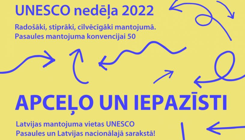 UNESCO nedēļā, no 10. līdz 16. oktobrim, ikviens ir gaidīts klātienē Latvijas mantojuma vietās, kas iekļautas UNESCO Pasaules mantojuma sarakstā un Latvijas nacionālajā sarakstā, – Rīgas vēsturiskajā centrā, „Strūves ģeodēziskā loka” punktos Jēkabpilī un Sestukalnā, Grobiņas arheoloģiskajā ansamblī, Kuldīgā, Daugavas lokos un Rundāles pilī, dārzā un meža parkā, lai piedalītos tematiskos pasākumos, tostarp izzinošās pastaigās, lekcijās un spēlēs.