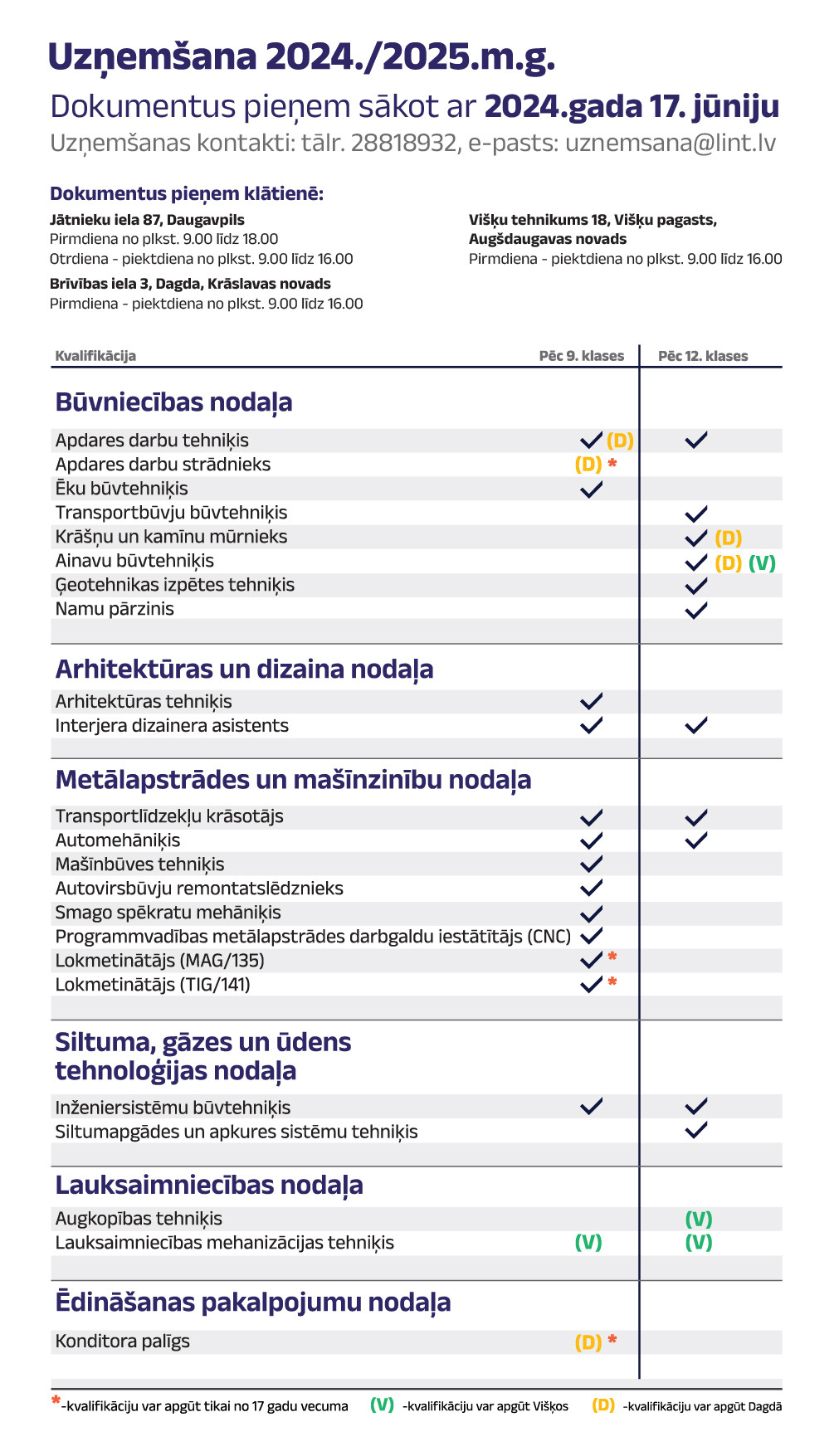 Uzņemšana Latgales Industriālā tehnikuma IPĪV “Višķi” sākot ar 17. jūniju!