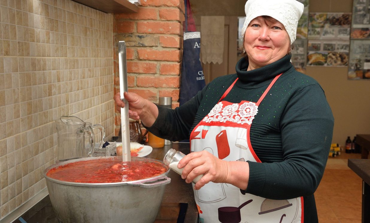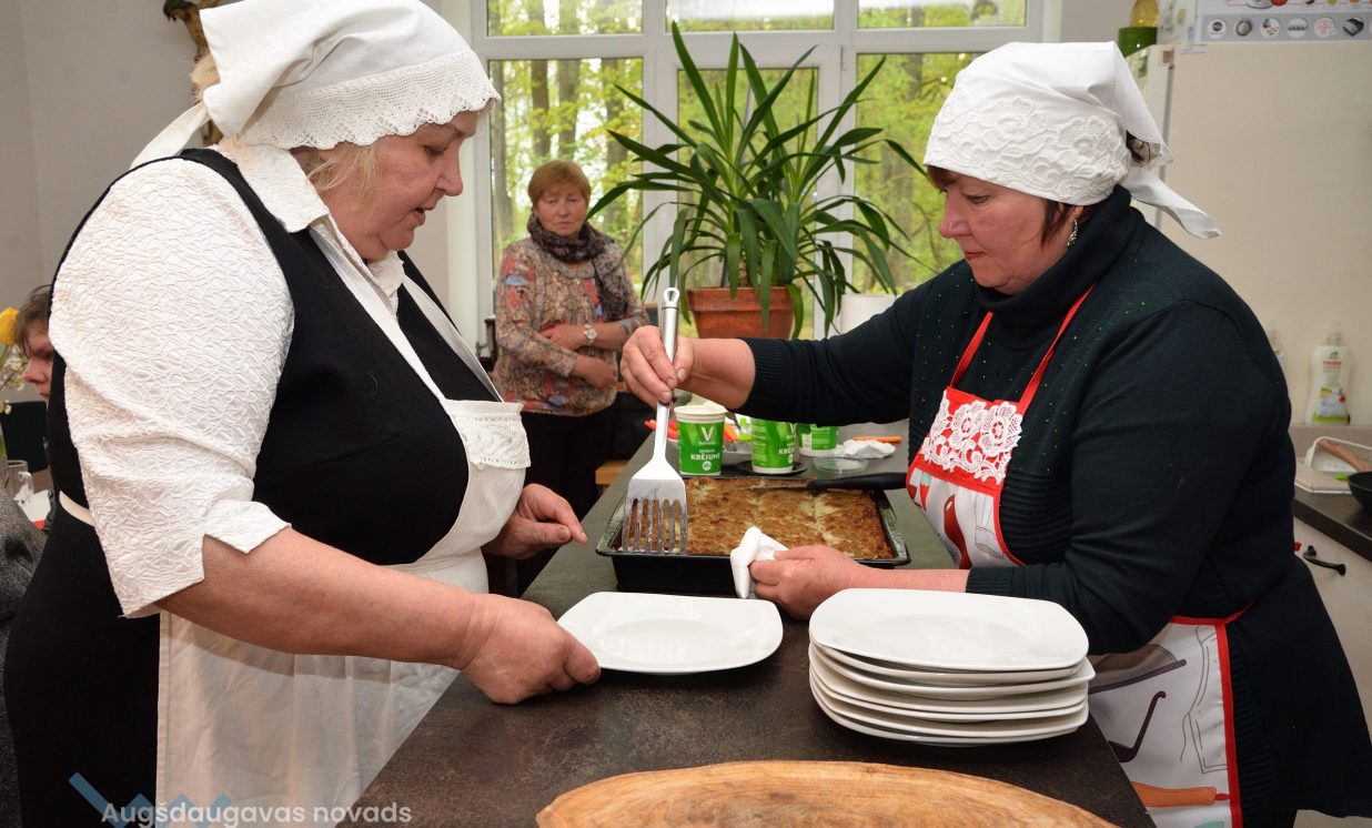 Muzeja kulinārā mantojuma telpā uz plīts liela katlā vira īsts ukraiņu borščs, bet plītī čurkstēja kartupeļu kuģelis. Šos gardumus gatavoja Kalupes saimniece Antoņina Geriņa. Viņa piedāvāja viesiem ēdienus, kas pašas ģimenē tiek gatavoti ļoti bieži, jo tie ir ne vien gardi, bet arī sātīgi. To vidū arī pašas ceptā maize un mājās kupināta gaļa, kas vilināt vilināja ar savu smaržu.