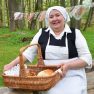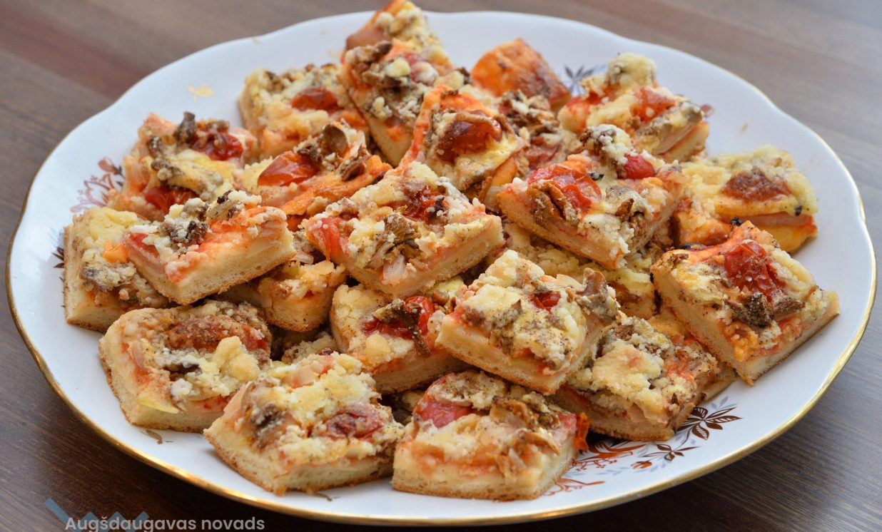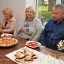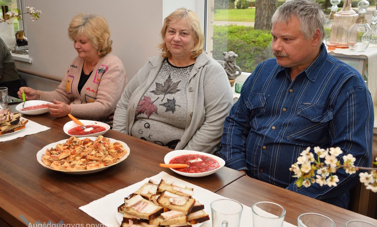 Pati Skrindu dzimtas muzeja direktore, saimniece Anna Lazdāne viesiem cēla galdā neparastas garšas picu, plātsmaizi un svaigi ceptu maizi.
