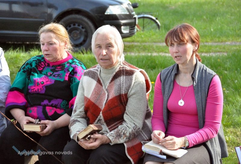 Savukārt Anna Rubine, daloties ar savu pieredzi, pastāstīja, ka padomju laikos maija dziedājumi netika praktizēti. “Mani vecāki 1973.gadā aizgāja aizsaulē un es pārcēlos uz dzīvi Daugavpilī. Tomēr liktenis bija lēmis, ka vēlāk atgriezos dzīvot šajā pusē, Sarkaņu sādžā. Šajā ciemā bija ļoti iecienīta dziedāšana pie krustiem, nāca arī vīrieši. Ļoti skaisti dziedāja Jānis Orbidāns, Viktors Kokins. Arī mani uzaicināja dziedāt. Pēc tam Anna Lazdāne nodibināja Skrindu dzimtas muzeju un tur mēs ierakstījām dziesmas Marijas godam. Tā šī lieta aizgāja un mēs turpinām dziedāt līdz pat šai baltai dieniņai,” dalījās Anna.
