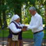 Skaistu dāvanu bija sagādājis ansamblis “Vabalis” – Daces Teivānes austus paklājiņus, ko dāvināja saviem draugiem – ansamblim “Stiprās sievas”.