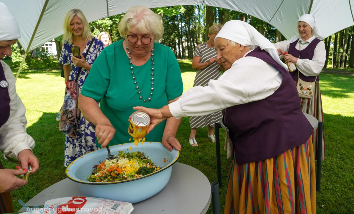 Tradicionāli pēc svētku koncerta tika gatavota lielā salātu bļoda, kurā liktas pagasta iedzīvotāju sarūpētās sastāvdaļas – dažādi dārzeņi, zaļumi un grauzdiņi