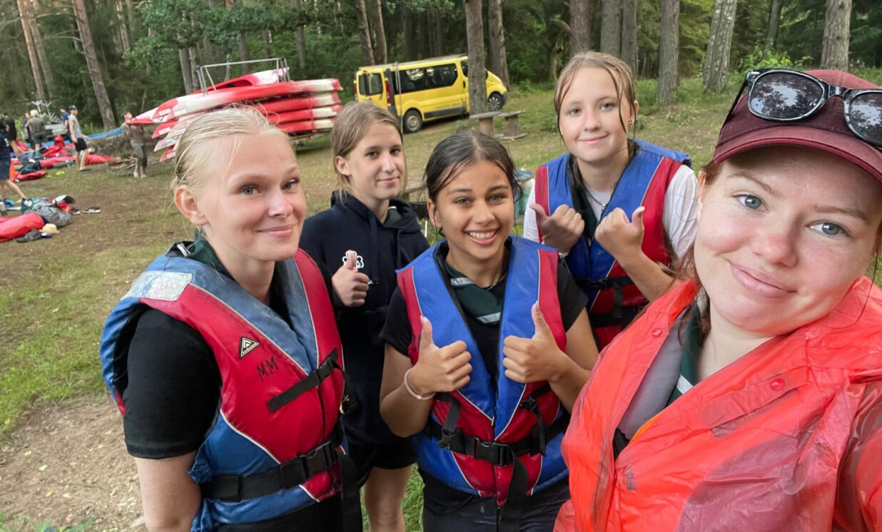 Otrā diena bija pārgājiena diena, kuras laikā meitenes devās ceļā, laivojot pa Braslas upi un Gauju. Laikapstākļi gan nelutināja braucējus, jo visu ceļu viņus pavadīja lietus mākoņi. Braslas upe pārsteidza ar akmeņiem, nogāzēm un kritušiem kokiem, kas padarīja ceļojumu vēl izaicinošāku. Nonākot galamērķī, visiem kopīgi vajadzēja iekārtot naktsmītni un iekurināt ugunskuru, lai pagatavotu vakariņas un izžāvētu drēbes. Paēduši brokastis, jaunieši devās atpakaļ ceļā uz nometni. Tika noieti 13 km un ar laivām nobraukti vairāk nekā 25 km.