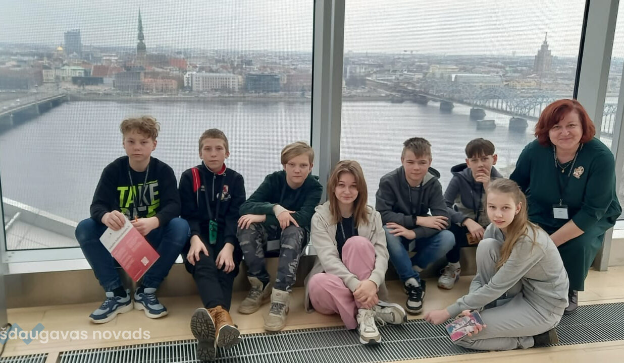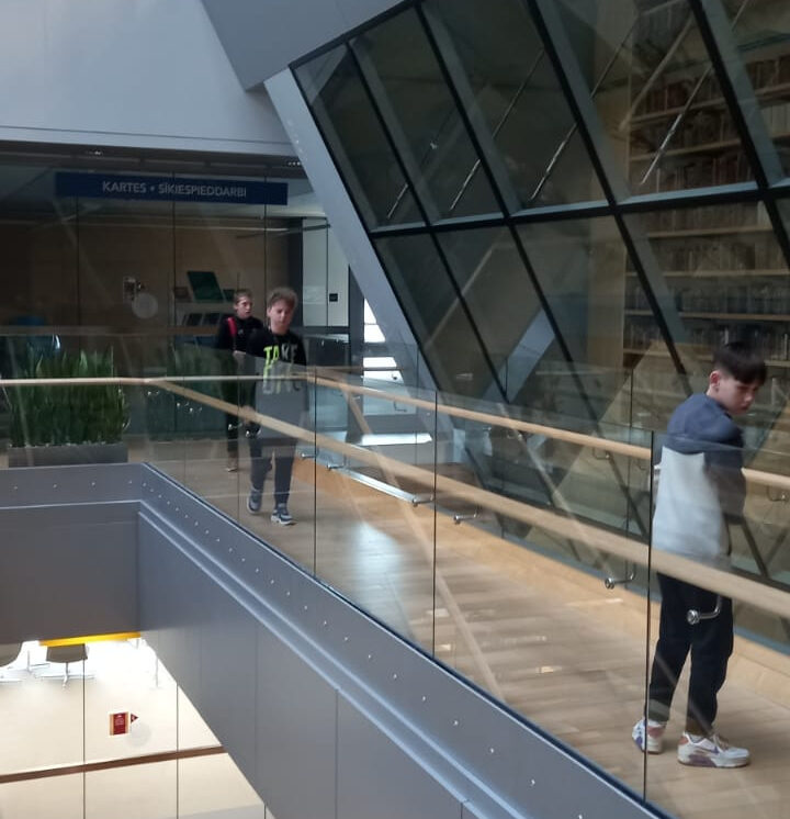 Ceļā devāmies ar vilcienu - daudziem tas bija pirmais brauciens ar šo transporta līdzekli un pa Rīgu pārvietojāmies kājām! Vispirms apmeklējām Latvijas Nacionālo bibliotēku, kur izspēlējām Orientēšanās spēli. Tā bija interesanta pieredze – pašiem pārvietoties pa stāviem, meklēt objektus un atbildēt uz jautājumiem. Uzbraucām arī bibliotēkas 11. un 12.stāvā, lai redzēto skaisto Rīgas panorāmu no augšas.