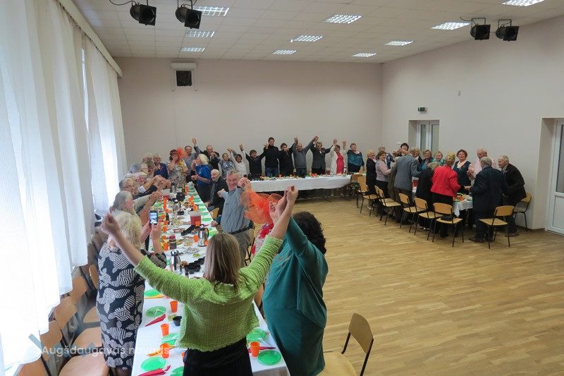 Pasākuma vadītāji sagaidīja vaboliešus ar dažādu krāsu ziediem. Katra krāsa simbolizēja kādu nozīmīgu rakstura īpašību. Priecēja ar savām dziesmām Igauņu ģimene. Apsveikuma vārdus teica Daugavpils novada domes priekšsēdētāja Janīna Jalinska, novada Sociālā dienesta vadītāja Anna Jegorova, Vaboles pagasta pārvaldes vadītāja Aina Pabērza un Sociālā dienesta sociālā darbiniece Valentīna Skrinda. Ar apbrīnojamu interesi tika skatīta arī rudens ziedu izstāde, ko izveidoja paši seniori.