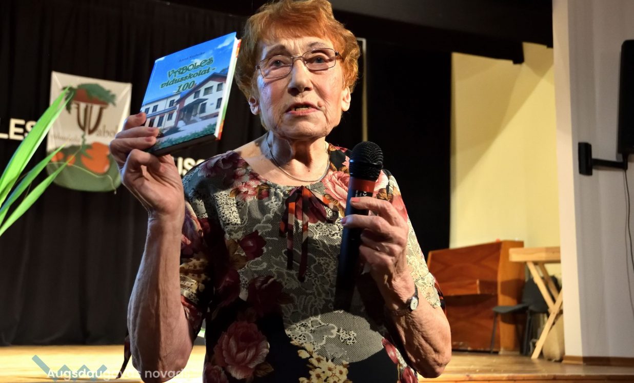 Pirmā izlaiduma absolvente Anna Kudeiko prezentēja grāmatu ar saviem atmiņu stāstiem par skolas laikiem. Viņa raksta: ,,1937.gads. Pie skolas dārziņa ziedēja košas dālijas. Tik lielas kā tēva cepure. Sirsniņa strauji pukstēja, turot rociņu tēva siltajā plaukstā. Jo tā bija mana pirmā skolas diena… Lejā Vaboles ezers ar baltām ūdensrozēm un dzelmē nogrimušu burvju pili.” Viņas grāmata “Vaboles vidusskolai – 100” tika dāvāta skolai.