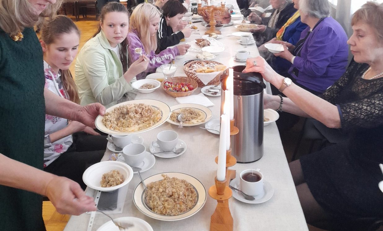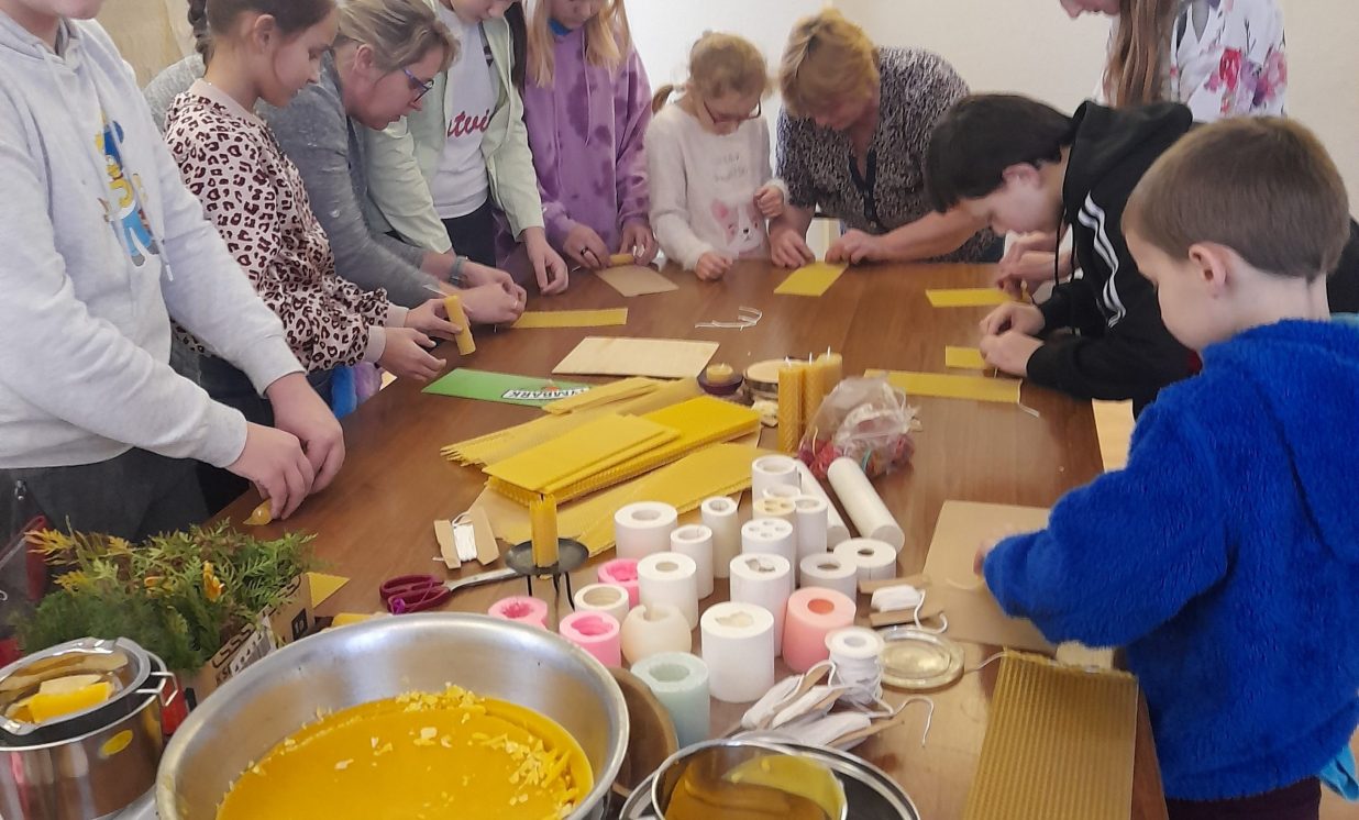 Blakus telpā bija iekārtota sveču liešanas darbnīca, ko vadīja Anna un Inese Melnes. Pasākuma dalībniekiem bija iespēja pašiem izliet un noformēt dabiskās vaska sveces. Sveču liešanas radošā aktivitāte kalupiešiem bija jauns kopā būšanas un laika pavadīšanas brīdis. Katrs mājas devās ar paštaisītu vaska svecīti. Paldies darbnīcas vadītājām Annai un Inesei par atbalstu pasākuma organizēšanā!