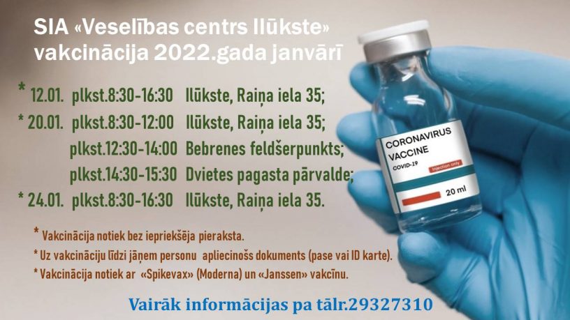 15. janvārī plkst. 10.00 izbraukuma vakcinācija Laucesā pa viensētām kopā ar Nacionālajiem bruņotajiem spēkiem;