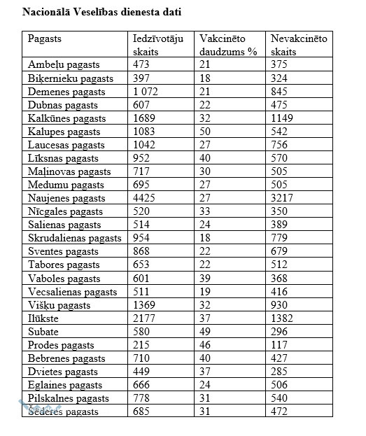 Šodien, 22. oktobrī, plkst. 15.00 būs iespēja vakcinēties Vecsalienas un Salienas pagastā. Vakcinācija norisināsies Vecsalienas pagasta ēkā.