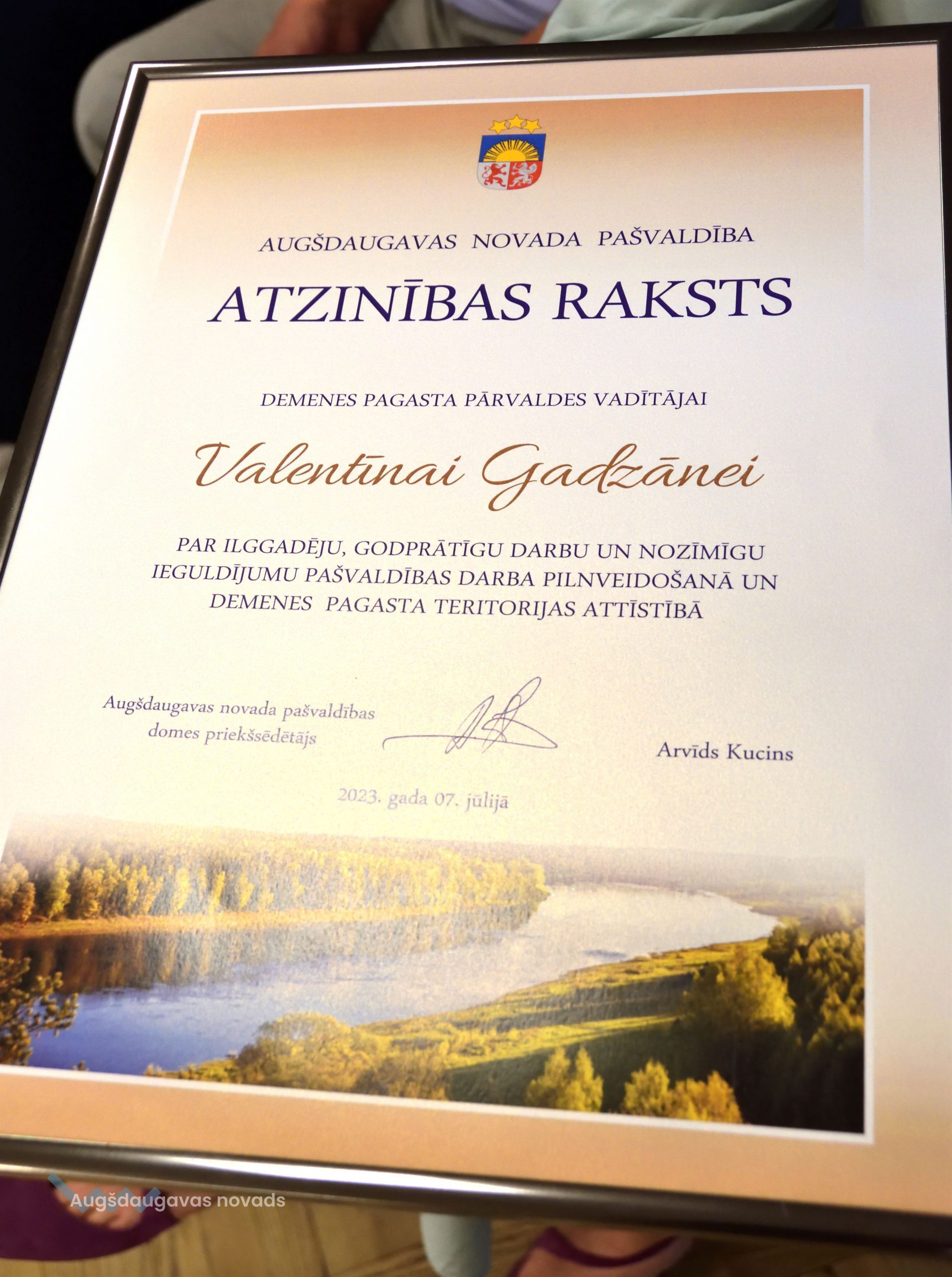 7. jūlijā Augšdaugavas novada vadība ar labā vēlējumiem devās uz Demenes kultūras namu, lai sveiktu Valentīnu Gadzāni ar došanos pelnītajā atpūtā. Pagasta pārvaldniecei tika pasniegts arī Atzinības raksts par "Par ilggadēju, godprātīgu darbu un nozīmīgu ieguldījumu pašvaldības darba pilnveidošanā un Demenes pagasta teritorijas attīstībā."