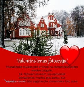 ♥ Ja vēlaties Valentīndienu pavadīt svaigā gaisā un par piemiņu izveidot skaistu fotogrāfiju, tad 14. februārī varat doties uz Vecsalienas muižas pils parku, kur no plkst. 11.00 būs pieejama romantiska foto zona individuālām fotosesijām.