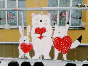 ♥ Mīlestības dienas noskaņa mājo pie Špoģu Mūzikas un mākslas skolas, kuras apkārtni un telpas rotā Valentīndienas mīlīgie zvēriņi un sirsniņas. Estētisko noformējumu darināja skolas pedagogi Valdis Grebežs un Anita Jasinska.