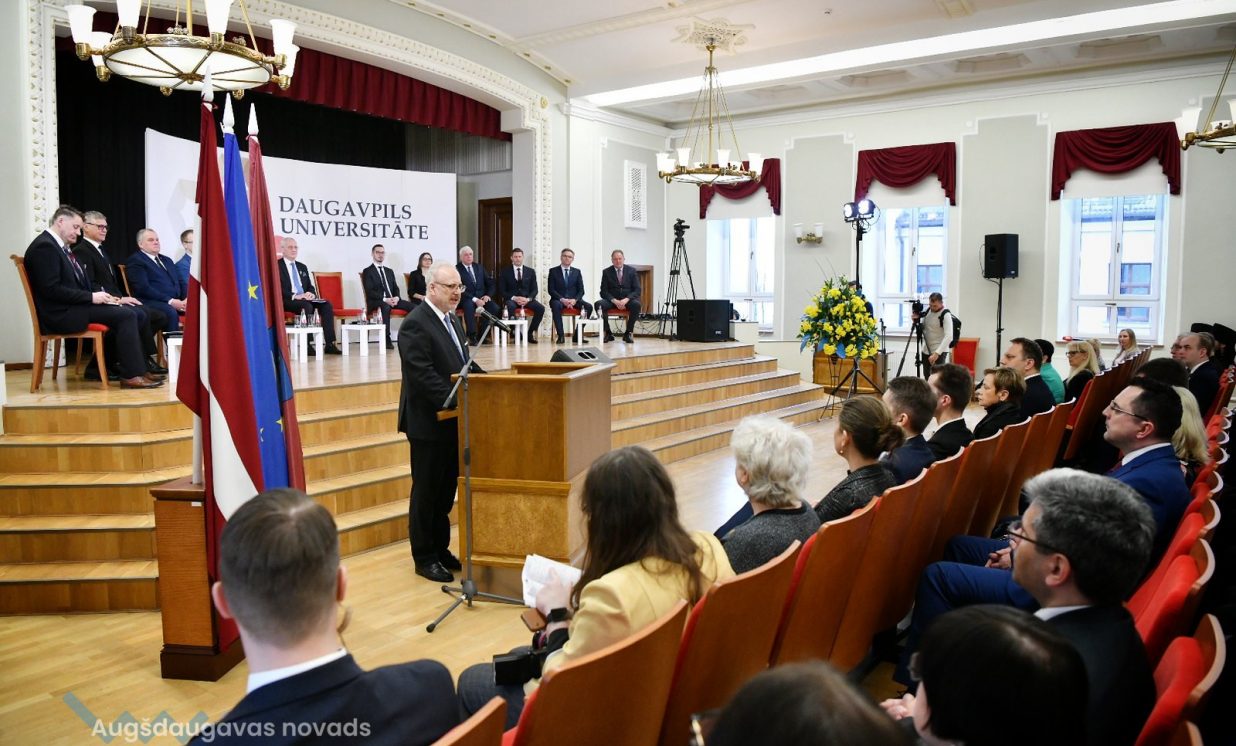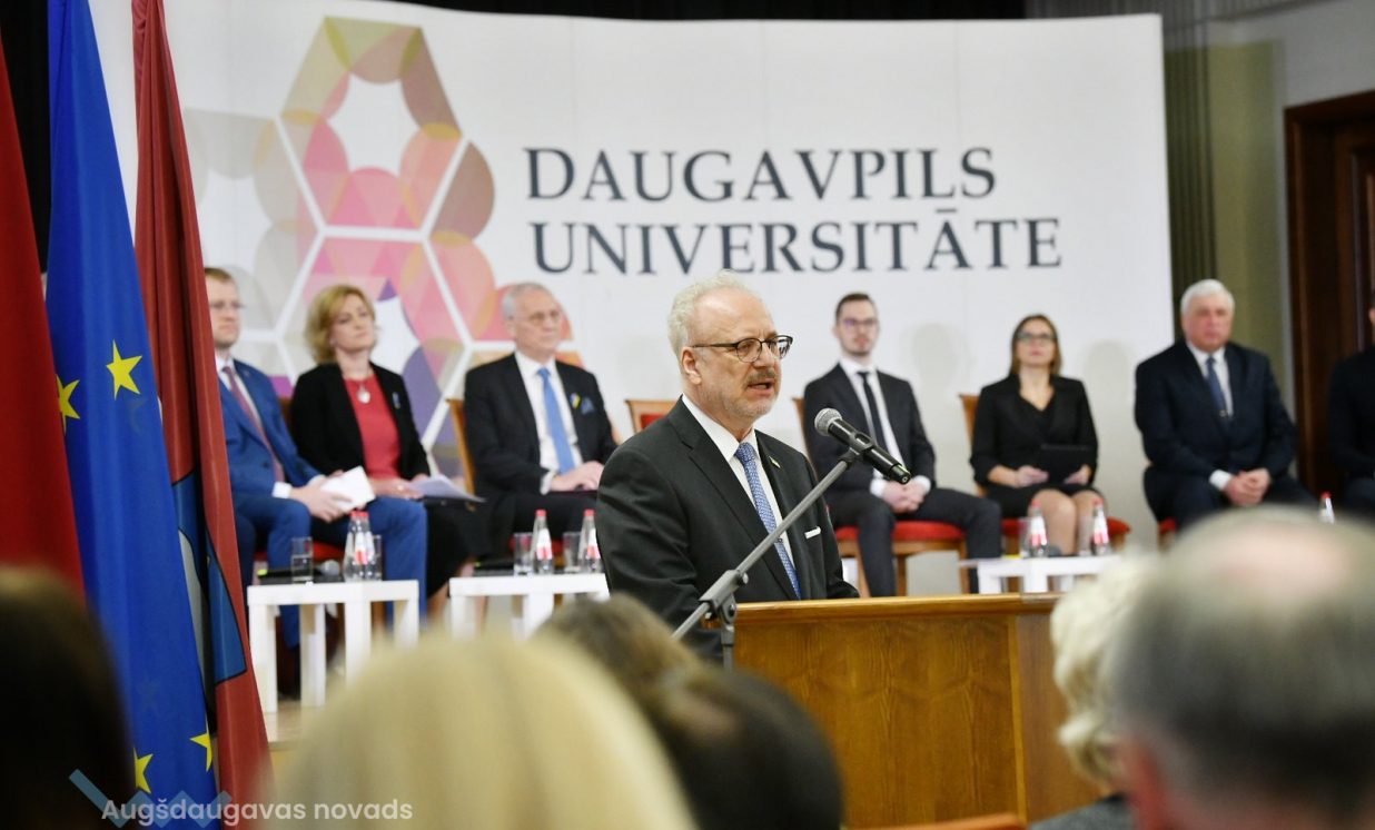 Daugavpils Universitātē Egils Levits diskutēja ar Latgales plānošanas reģiona pašvaldību vadītājiem, Vides aizsardzības un reģionālās attīstības ministru Artūru Tomu Plešu, Ekonomikas ministrijas parlamentāro sekretāri Ilzi Indriksoni un Latvijas Investīciju un attīstības aģentūras pārstāvjiem par Latgales attīstības perspektīvām jaunu izaicinājumu priekšā.