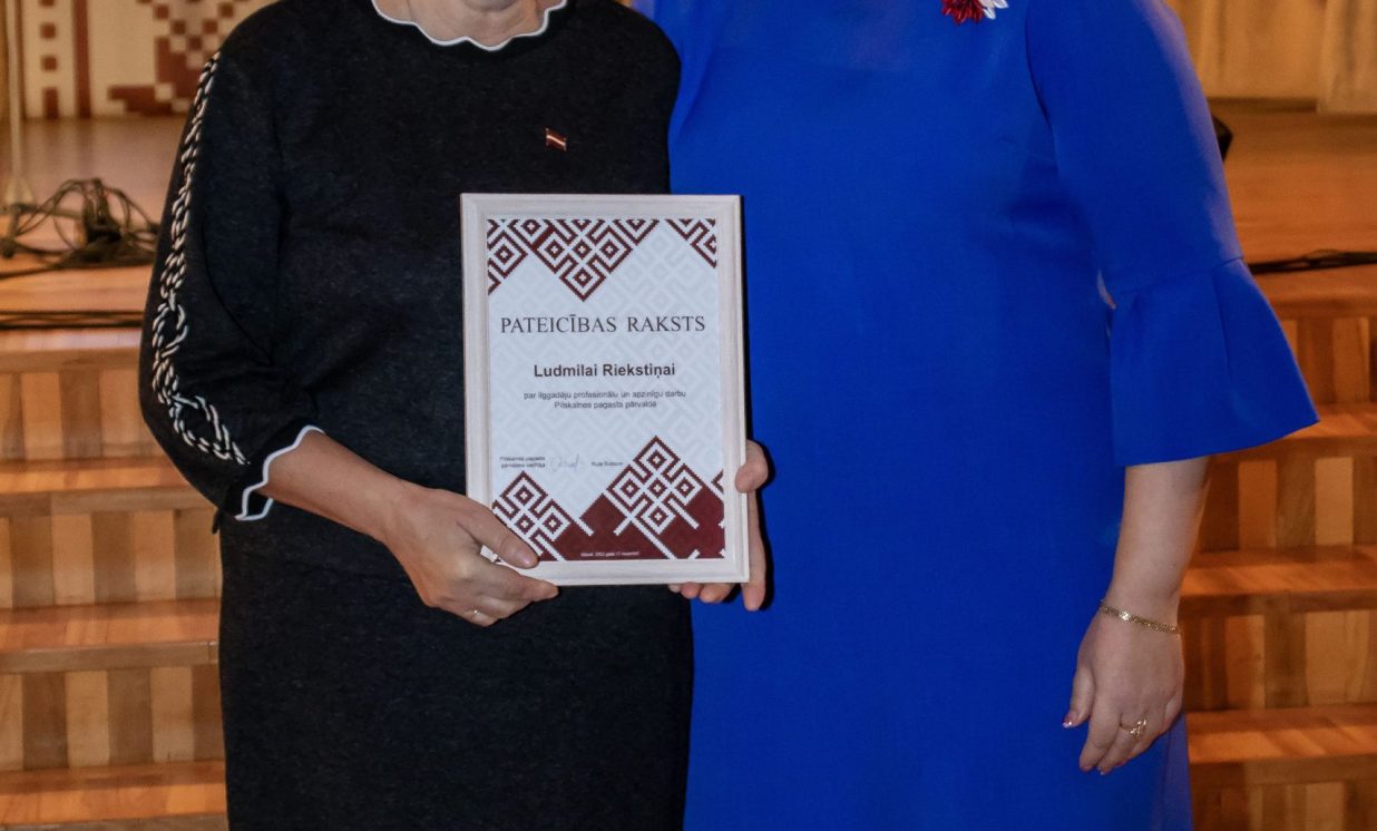 Ilūkstes un Pilskalnes iestāžu pateicības, par profesionālu, apzinīgu un radošu darbu, saņēma: