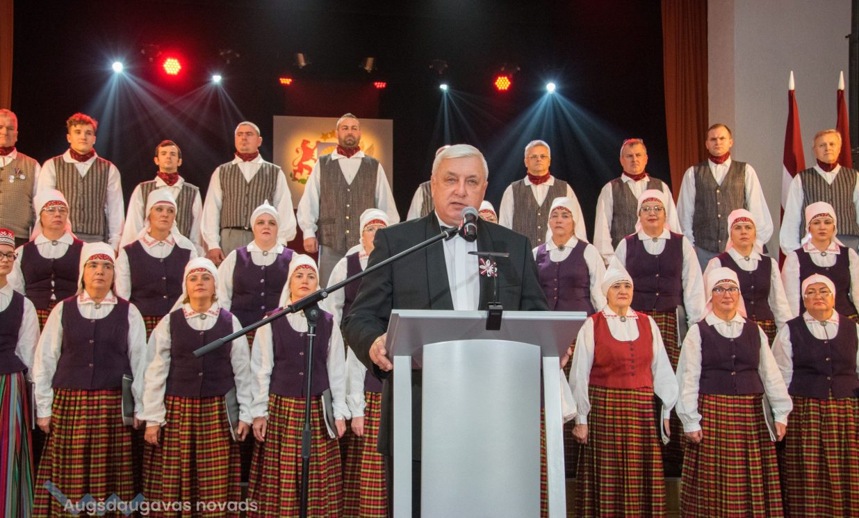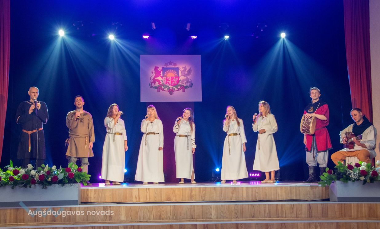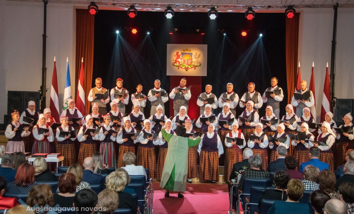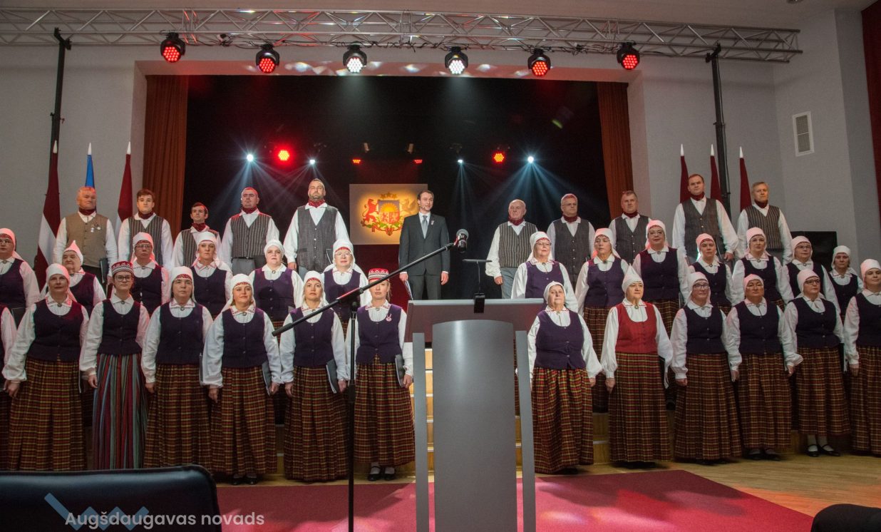 Ieskatoties Latvijas valsts tapšanas vēstures sarežģītajos līkločos, var pārliecināties, ka latviešu tautas cīņa par savu valsti, par savas zemes neatkarību vienmēr ir saistījusies ar dziesmu un dziesmu svētkiem. Pirmajos Dziesmu svētkos 1873. gadā pirmoreiz kā apsveikuma dziesma skanēja Baumaņa Kārļa “Dievs, svētī Latviju!”, pirmoreiz latvieši jutās, ja ne vēl kā kungi savā zemē, tad jau kā saimnieki savos svētkos. Arī Augšdaugavas novada rīkotajā pasākumā par godu Latvijas Republikas proklamēšanas 105. gadadienai skanēja Latvijas valsts Himna.