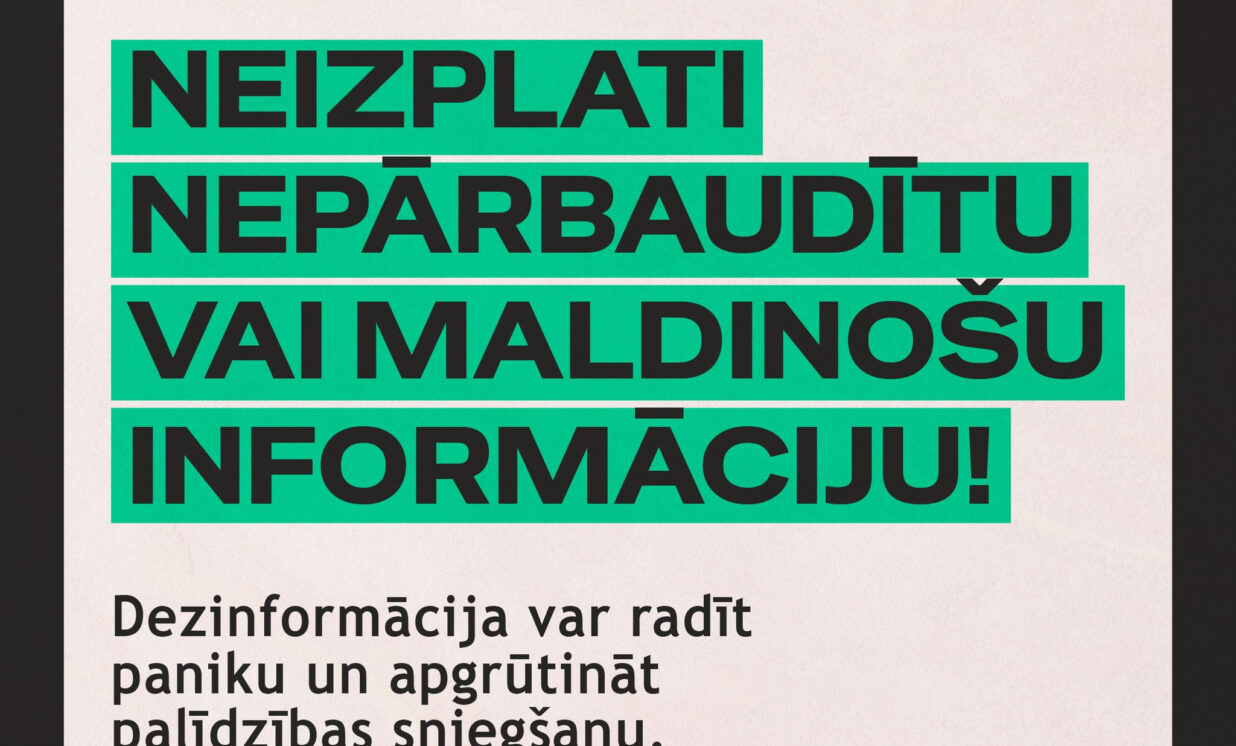 neizplati nepārbaudītu vai maldinošu informāciju! Dezinformācija var radīt paniku un apgrūtināt palīdzības sniegšanu.