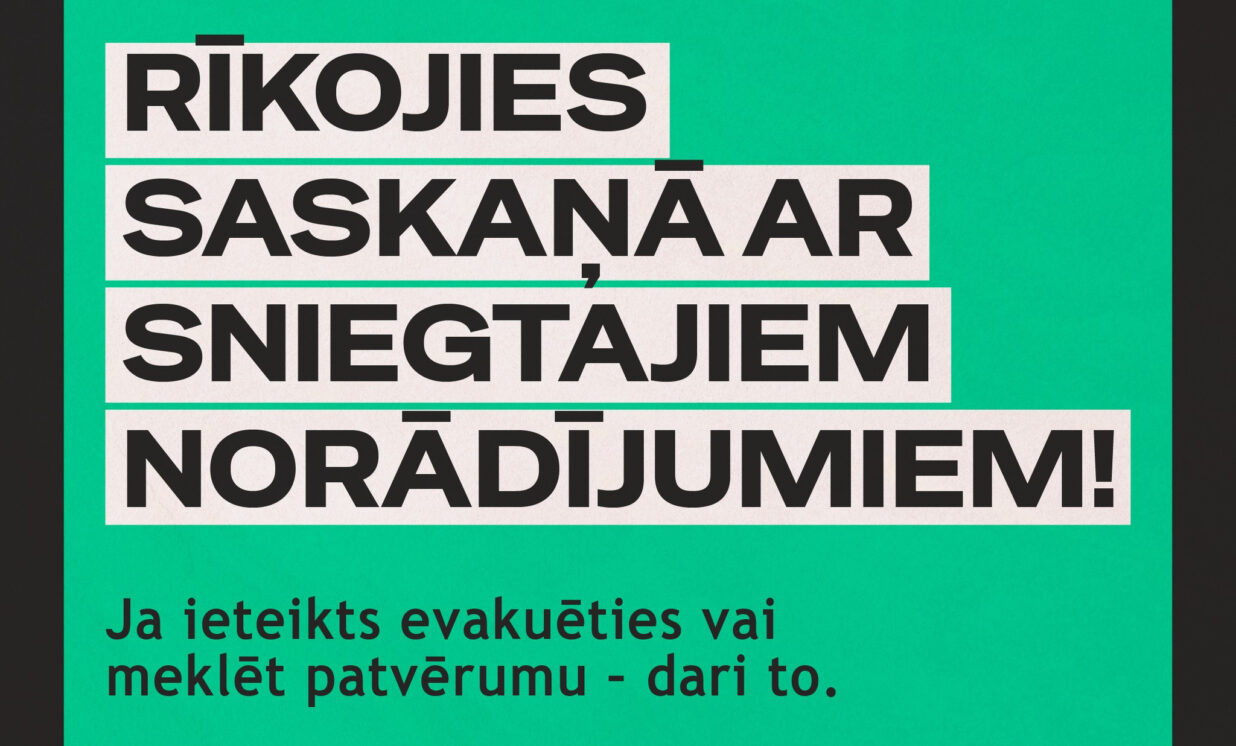 rīkojies saskaņā ar sniegtajiem norādījumiem! Ja ieteikts evakuēties vai meklēt patvērumu – dari to;