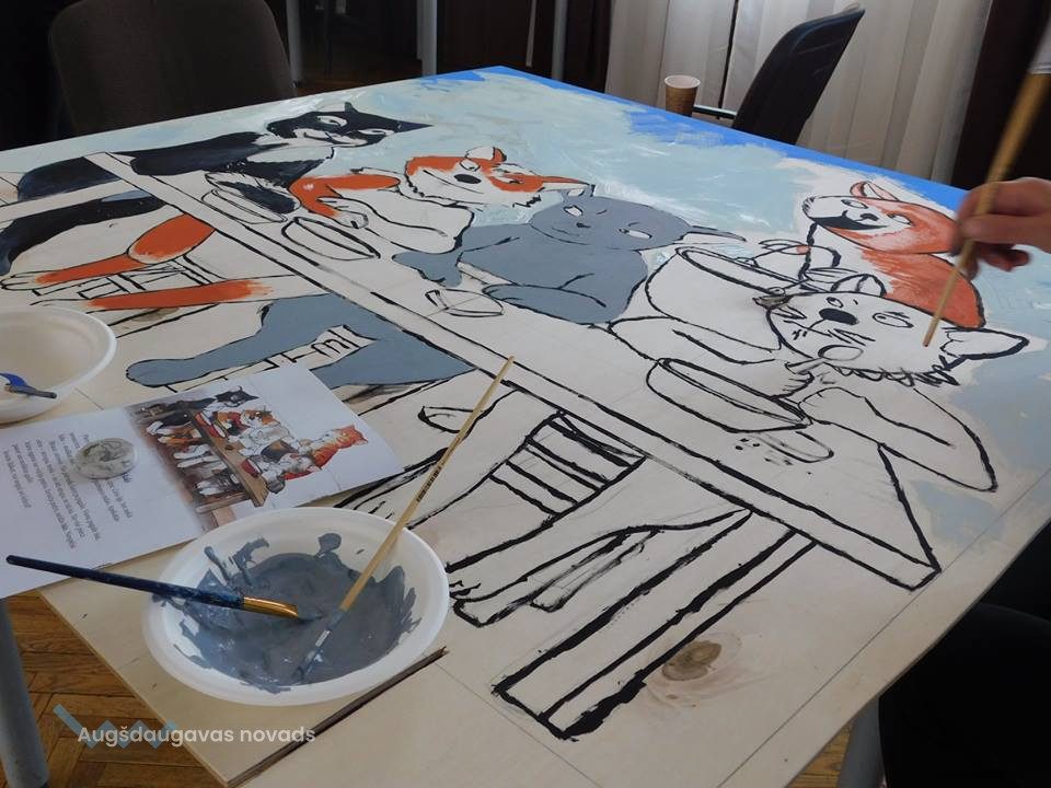 Nometnes laikā jauniešiem bija iespēja izprast pasaku un tās jēdzienu, uzzināt, kāpēc tās radās, analizēt jau esošās tautas pasakas un arī pašiem uzrakstīt savu pasaku. Literārās un ar latviešu kultūru saistītās aktivitātes nometnes dalībniekiem vadīja Kalkūnes pagasta pārvaldes bibliotekāre Tatjana Rosovska. Nometnes otrā galvenā pamattēma bija māksla, līdz ar ko jauniešiem bija iespēja ne tikai radoši izpausties, bet arī apgūt jaunas prasmes un zināšanas par gleznošanu un tās pamatprincipiem, pateicoties māksliniecei Jevgenijai Muštavinskai, kura aktīvi vadīja gan mākslas nodarbības, gan radošo māksliniecisko procesu pie lielformāta gleznu un tantemaresku izstrādes. Visā dienas nometnē „Pa pasaku takām” laikā jaunieši uzzīmēja 3 tantemareskas un 3 lielformāta gleznas, veltītas latviešu tautas pasakām, kā arī neaizmirsa par savu piederību Kalkūnes pagastam un izveidoja vēl 3 lielformāta tantemareskas, kurās atspoguļoja ievērojamus kultūrvēsturiskus objektus, tādus kā Kalkūnes muižu un Raiņa māju Berķenelē. Visi jauniešu lielformāta zīmējumi un tantemareskas pēc nometnes projekta tiks prezentēti Kalkūnes pagasta pārvaldē, būs sastopami Raiņa mājas ekspozīcijā, kā arī prezentēti dažāda veida kultūras un sabiedriskajos pasākumos Daugavpils novadā.