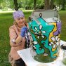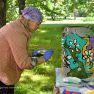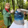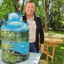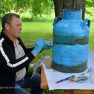 Daugavpils reģiona mākslinieku asociācijas dalībniece Natālija Krjukova iedvesmojas no apkārtējās pasaules, mūzikas un cenšas tver mirkļus, savos darbos spēlējoties ar kontrastiem un spilgtām krāsām. Uz sarūsējušās kannas virsmas viņa uzbūra nelielu ezera sonāti.