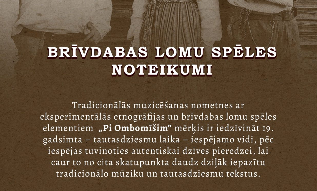 Latvijas Kultūrkapitāla fonda atbalstītā projekta mērķis ir radīt un izdzīvot jaunu formātu tradicionālās mūzikas un amatu nometnēm, apvienojot prasmju apguvi ar lomu spēles elementiem un eksperimentālās etnogrāfijas paņēmieniem, lai atrastu un atvērtu tādus ceļus jauniešu iesaistīšanai tradīcijas pārmantošanā, kas jauniešiem liekas atraktīvi, tādejādi veicinot folkloras kustības kontinuitāti - jauniešu iesaistīšanu folkloras kustībā. Projekta ietvaros augusta nogalē tiks organizēta nometne, kurā īsā laika periodā ikviens interesents varēs iespējami patiesi saskarties ar dažādiem tautas tradīcijas elementiem, piedzīvojot dzīvi "kā senos laikos". Tradicionālās prasmes būs ne tikai apgūstamas, bet tiks radītas situācijas, kad tās kļūs nepieciešamas ikdienišķai eksistencei. Vidē, kas pietuvināta izvēlētajam laikmetam, 19.gs.beigām, vadītāju vadītā nometnē visu laiku tiek mimikrēta mītiskā "pagātnes ikdiena", radot inscinētus sarežģījumus, kas iederīgu lomu pieņēmušiem dalībniekiem risināmi "tradicionālā garā".