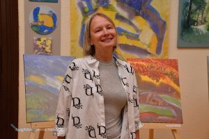 Vistālāko ceļu uz plenēru mēroja Inga Strause Godejorde, kura ieradusies šurp no Amerikas, lai apciemotu savu dzimto Rēzekni un draugus, bet pie viena arī piedalījās mākslas plenērā. Ingas darbi ir atšķirīgi, jo tie ir veidoti uz zīda. Māksliniece centusies uz zīda attēlot iespaidus, kas gūti, apmeklējot vairākas vietas novadā. “Plenērs bija ļoti skaists, draudzīga un jauka atmosfēra, bija ļoti labs laiks, viss bija ļoti labi noorganizēts, paldies organizatorei Jeļenai. Patika tas, ka katram māksliniekam ir cits stils, katrs glezno no sava skatupunkta, katram iznāca kaut kas savs, skaists un vienreizējs,” teic Inga.