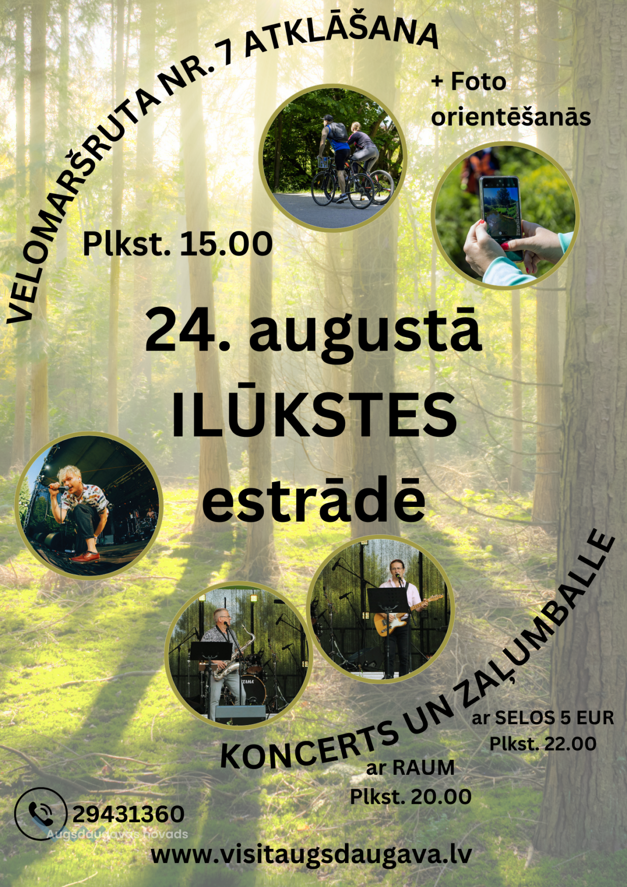 koncerts ar izpildītāju RAUM. Pulksten 22.00 - zaļumballe ar grupu "SELOS" (Maksas pasākums - 5 eiro, *velobraukšanas dalībniekiem ir BEZ MAKSAS).