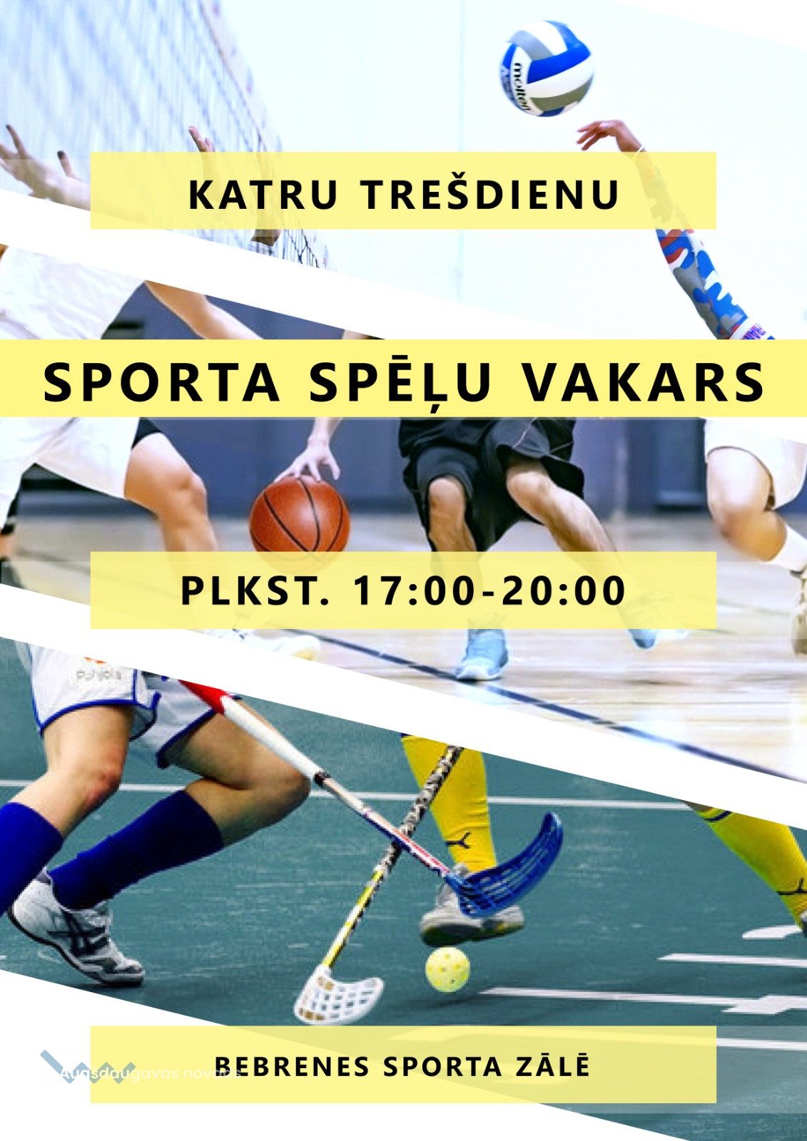 Sporta spēļu vakari notiek Bebrenes sporta zālē katru trešdienu no plkst. 17.00 – 20.00.
