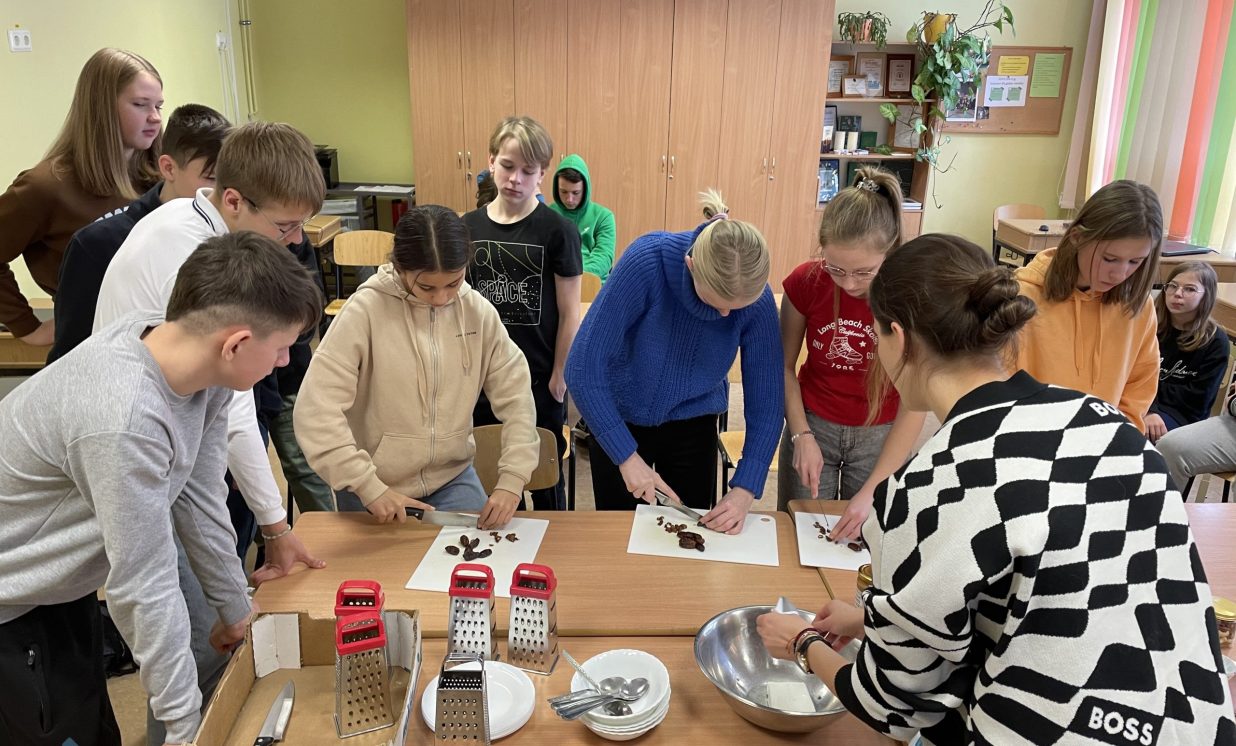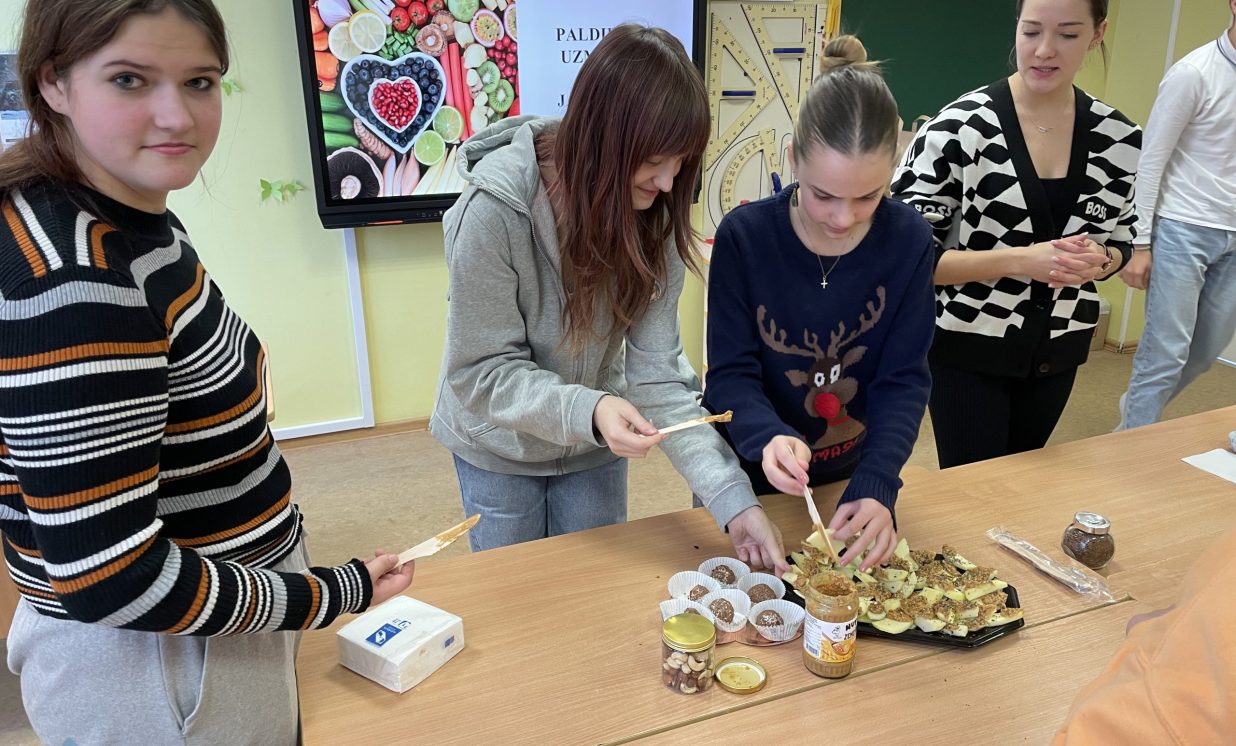 Pēc teorētiskās nodarbības, sekoja praktiskā nodarbība – veselīgu našķu pagatavošana. Jaunieši pagatavoja veselīgus sieriņus no biezpiena, datelēm, kokosriekstu skaidiņām un tumšās šokolādes, un arī tika pagatavoti āboli ar zemesriekstu sviestu un čia sēkliņām. Veselīgie našķi tika atdzīti par ļoti garšīgiem un papildinās jauniešu našķu klāstu!