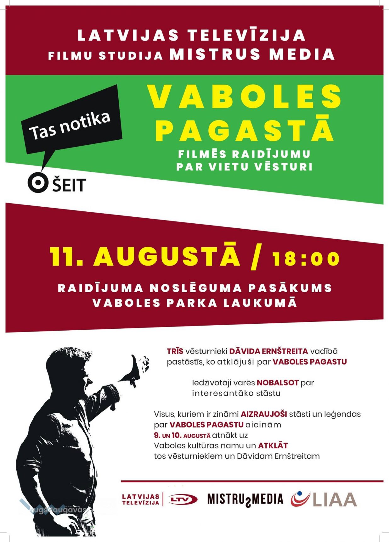 Savukārt 11. augustā plkst. 18.00 Vaboles parka laukumā notiks raidījuma noslēguma pasākums, kura laikā vēsturnieki un Dāvids Ernštreits klātesošajiem pastāstīs, ko atklājuši par Vaboles pagastu, bet iedzīvotāji varēs nobalsot par interesantāko stāstu.
