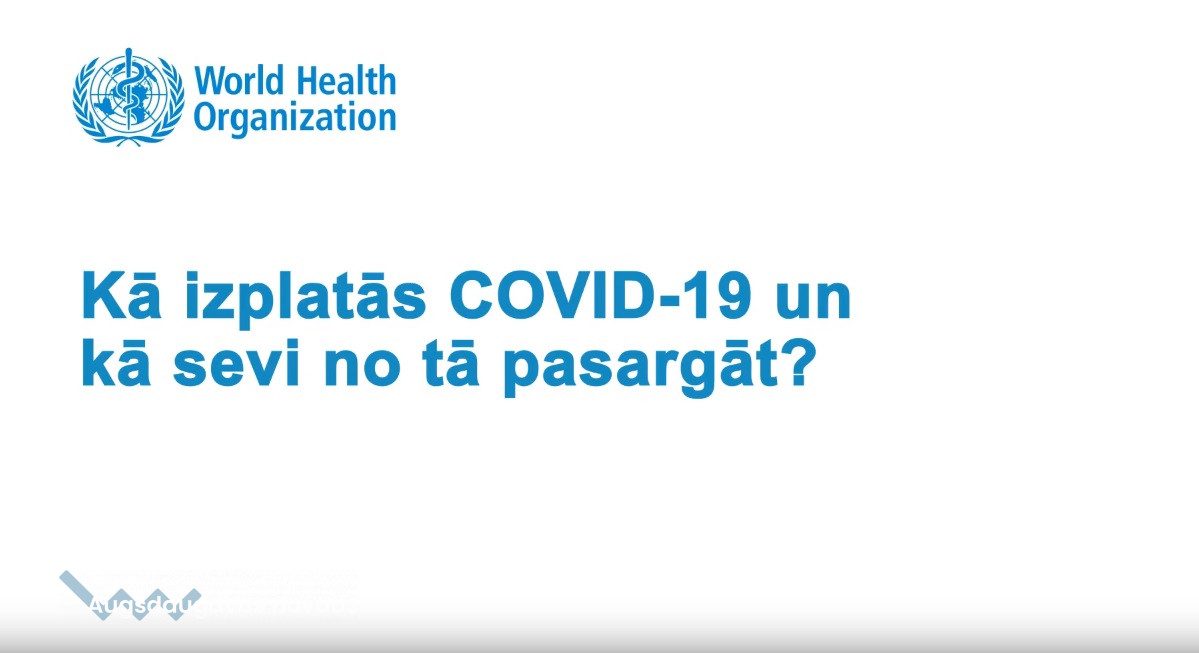 Noskaties video par COVID – 19 izplatīšanās ceļiem un noskaidro kā sevi pasargāt.