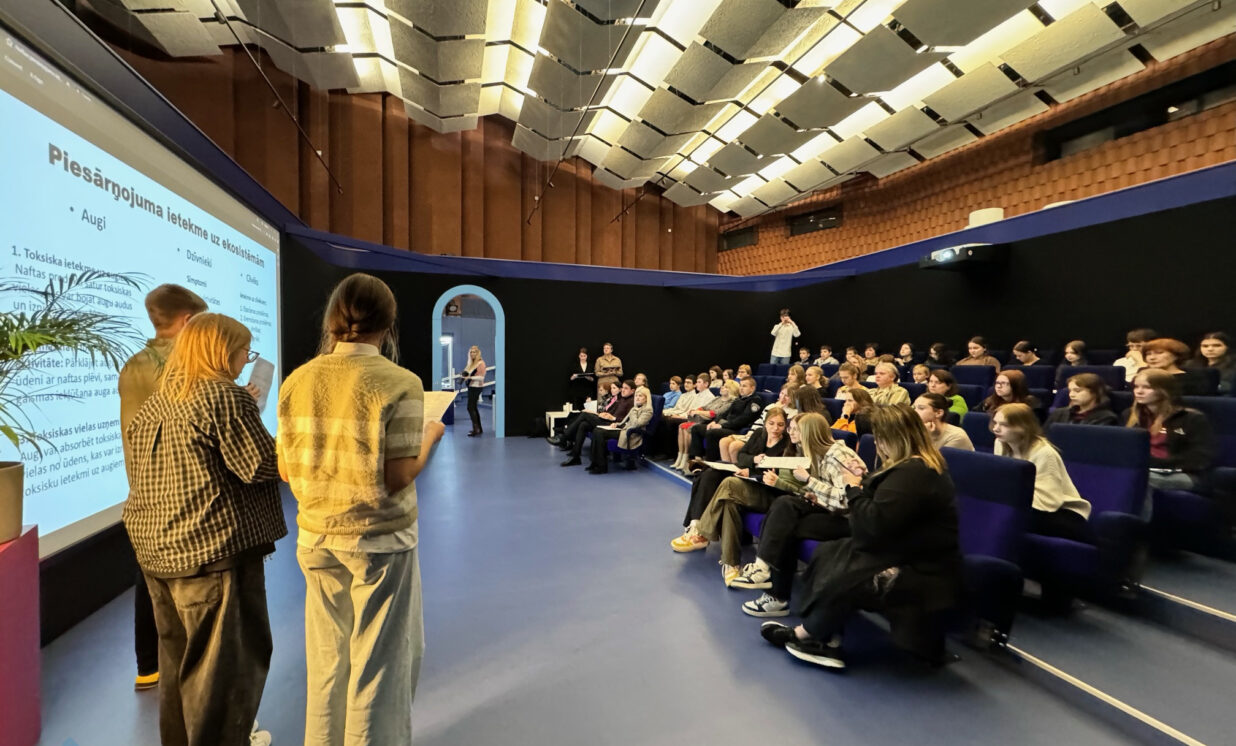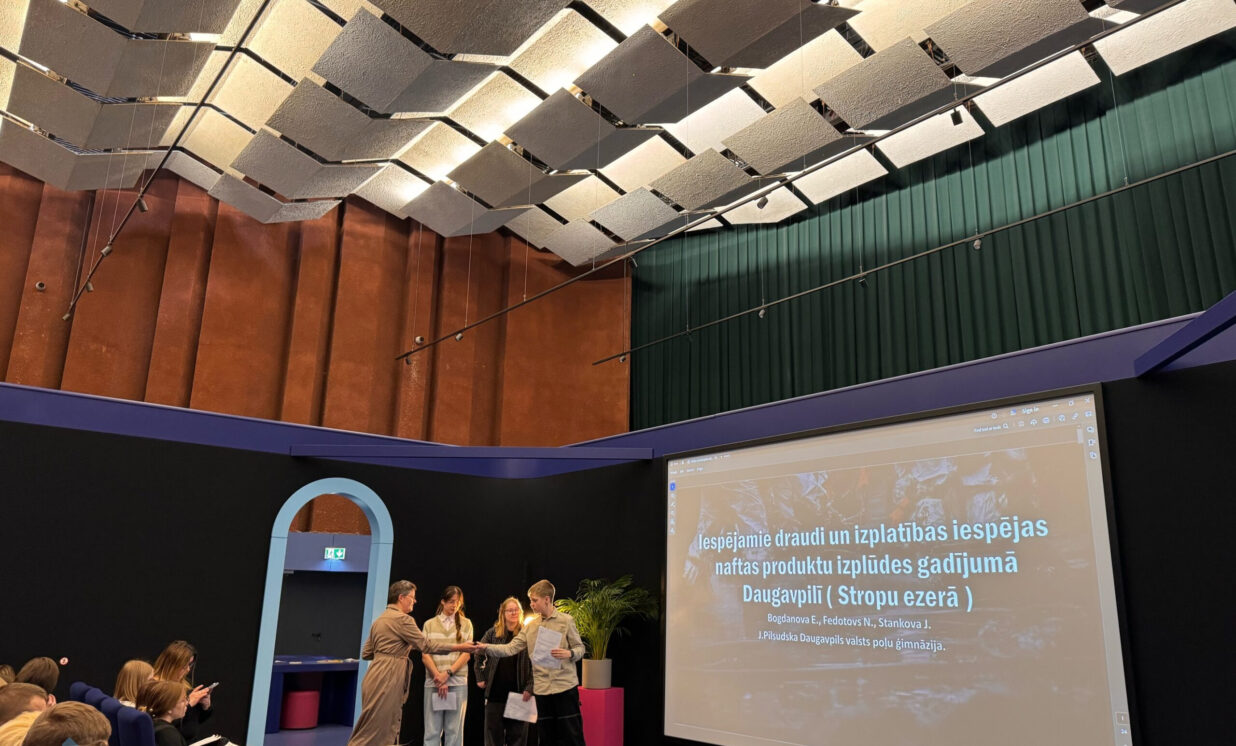 Twelve teams form of six Augšdaugava and Daugavpils city municipalities’ educational establishments featuring pupils from 5th till 9th grade participated in the contest. The first place went to Augšdaugava Municipality Zemgales High School team, whose representatives modelled a situation of contamination by heavy fuel oil in the Lake Zemgale. The second place went to Augšdaugava Municipality Saliena High School team that conducted research on the ability of moss to absorb oil and reduce the contamination of the environment by oil products. The third best team represented Daugavpils, but their project encompassed modelling of the situation of contamination in the Šūņupe River.