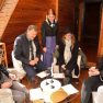 Raiņa mājas Berķenelē direktore Inese Bērziņa pārtapa par skolas direktori un, iezvanot pirmo zvanu plkst. 12.00, aicināja ikvienu klātesošo piedalīties darbmācības stundā, ko vadīja šūšanas mākslas meistare Rasma Ivbule. Skolēni bija sajūsmā par iespēju radoši darboties, veidojot dažādas auduma aplikācijas, kas noritēja mierīgā un patīkamas sarunas rosinošā atmosfērā. Stunda pagāja ātri un zvans aicināja doties starpbrīdī, ko visi pavadīja, mielojoties ar siltiem plāceņiem Pliekšānu gaumē.