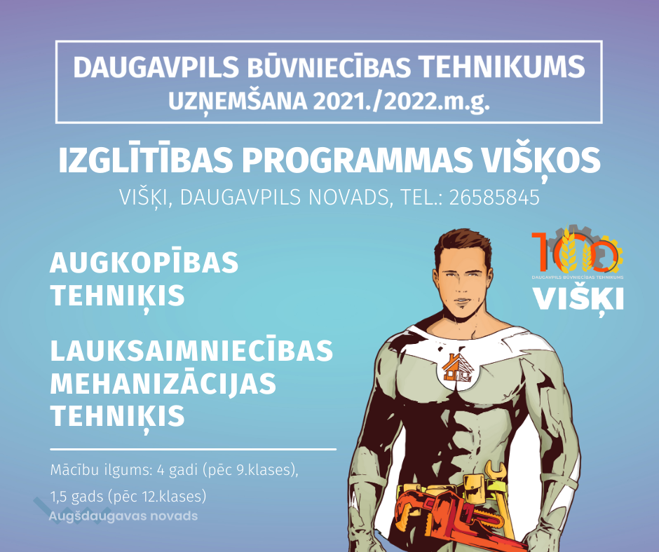 Daugavpils Būvniecības tehnikuma izglītības programmu īstenošanas vietā “Višķi” ir sākusies uzņemšana divās pamatapmācību programmās.