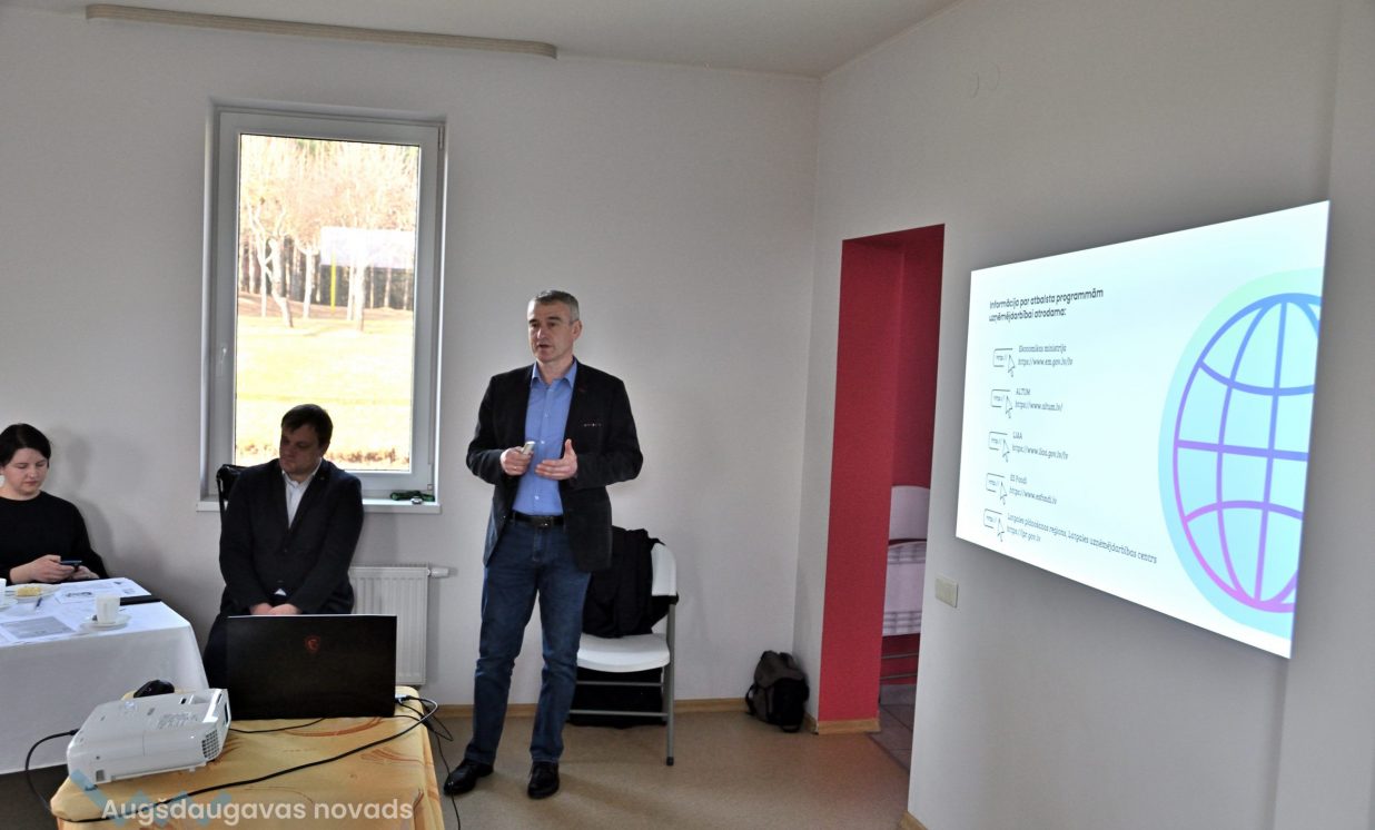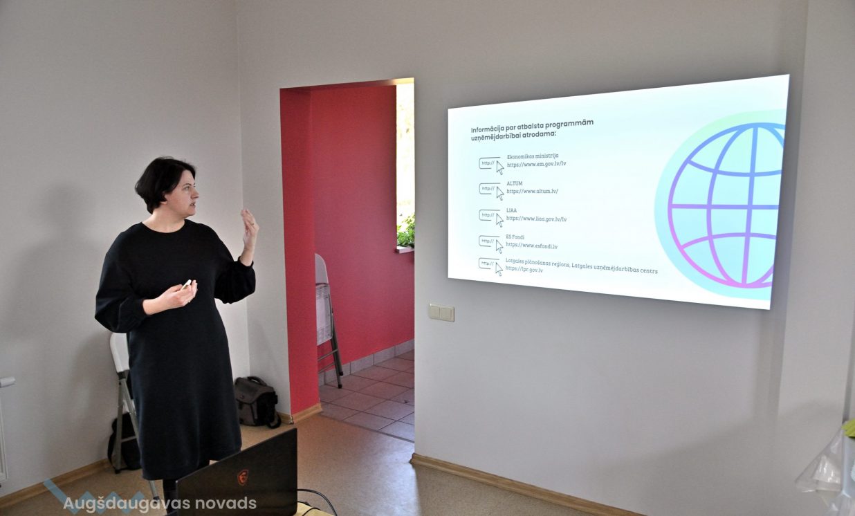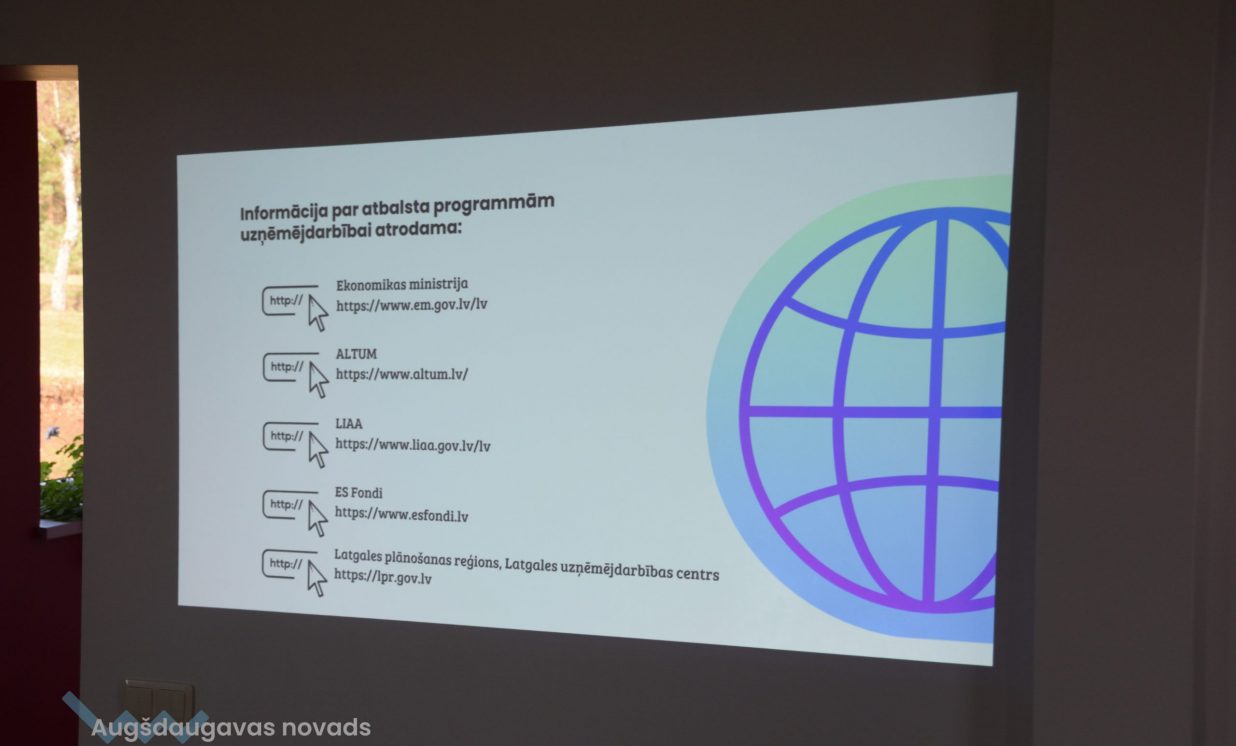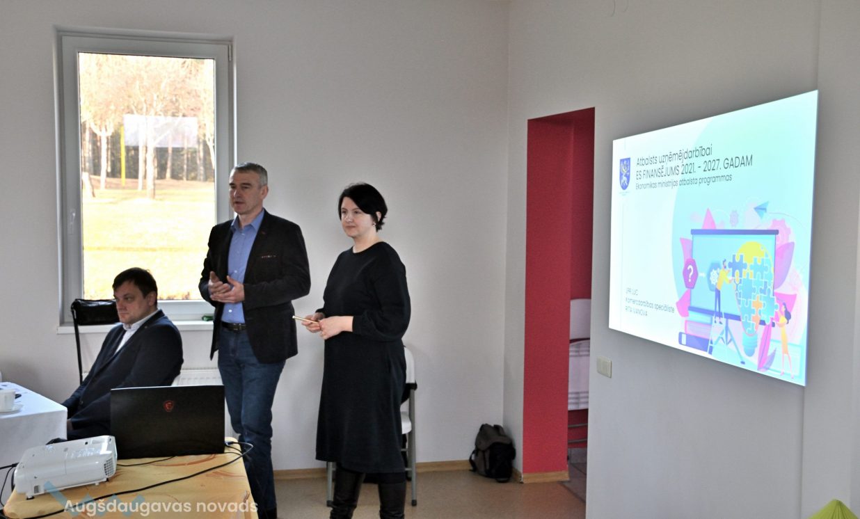 Par aktualitātēm uzņēmēju atbalsta pasākumos un atbalstu uzņēmumu digitalizācijā iepazīstināja Latgales uzņēmējdarbības centra vadītājs Andris Kucins un Latgales plānošanas reģiona komercdarbības konsultante Rita Ivanova. “Finansējums tiek dots inovatīviem produktiem, pētniecībai un dažādām jomām, kuras ir ilgtspējīgas. Līdzekļus piešķir arī digitalizācijai, zaļajiem projektiem, sociāli iekļaujošiem projektiem, līdzsvarotajai reģionu attīstībai. Lielākā daļa no finansējuma tiks inovācijām un digitalizācijai,” skaidro R. Ivanova.