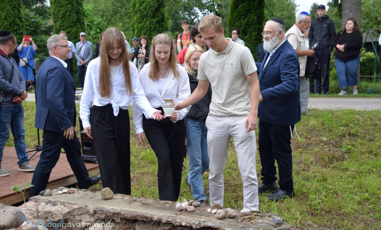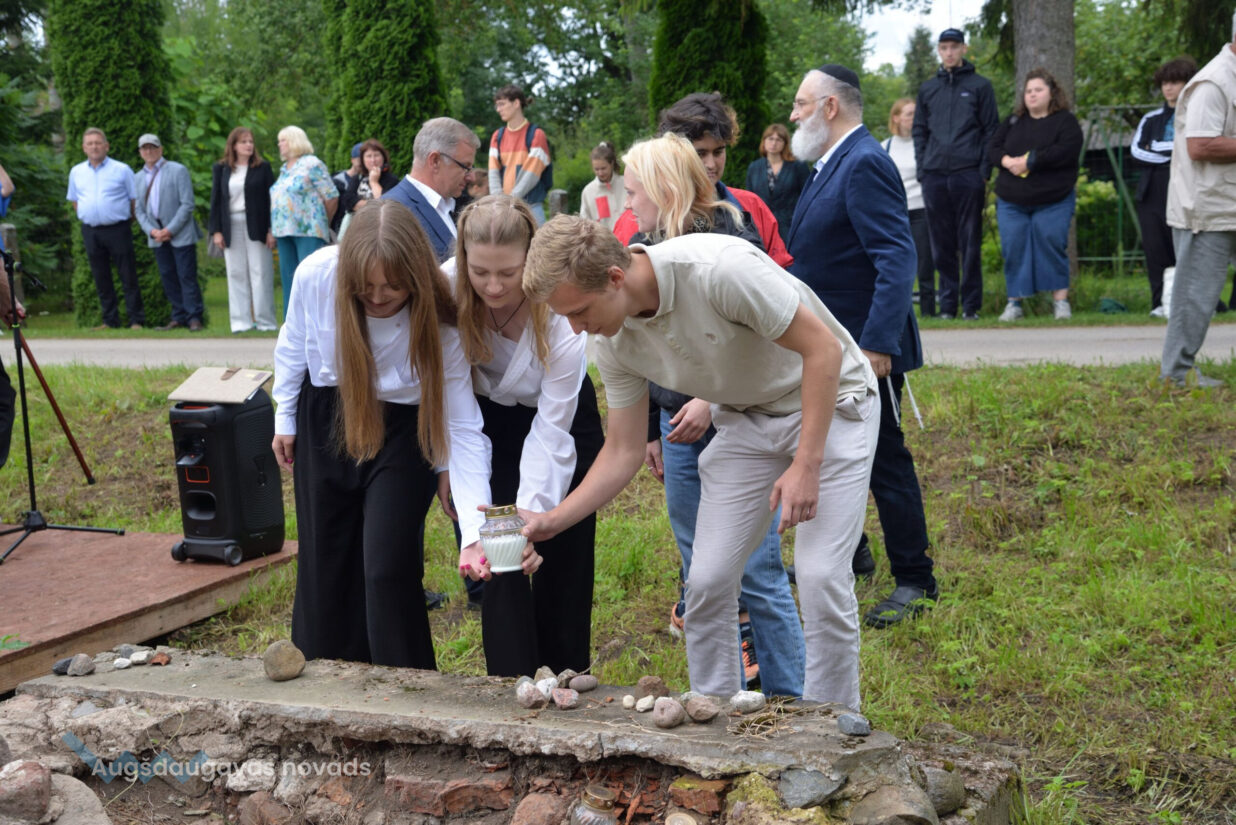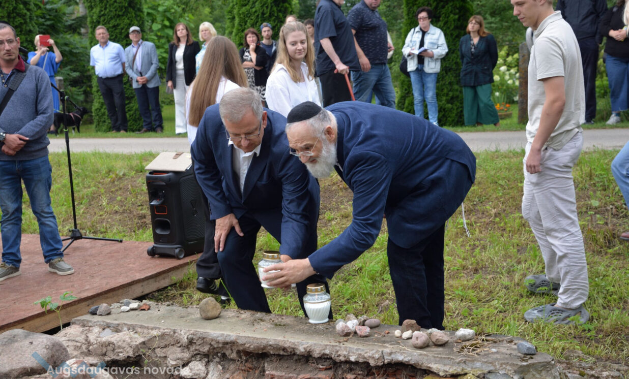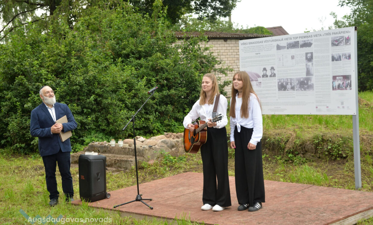 Piemiņas pasākumā sinagogas vietā Baruhs Čauskins kopā ar Daugavpils ebreju kopienas dalībniekiem lūdzās par Holokausta upuriem bijušā Višķu sinagogas piemiņas vietā, Višķu un vācu jaunieši iededzināja sveces.