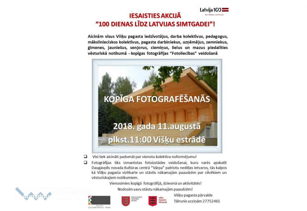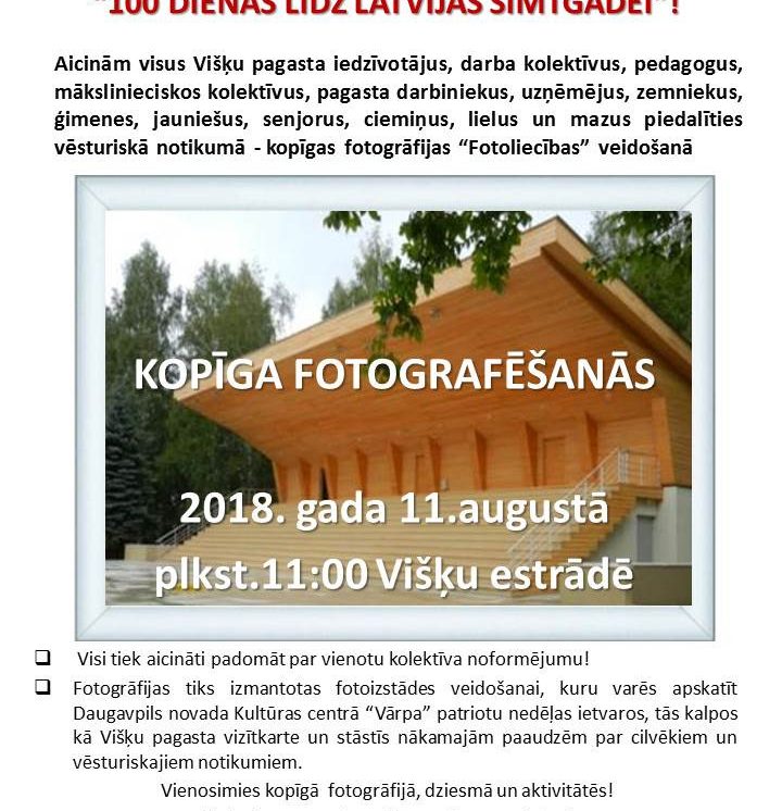 Aicinām visus Višķu pagasta iedzīvotājus, darba kolektīvus, pedagogus, mākslinieciskos kolektīvus, pagasta darbiniekus, uzņēmējus, zemniekus, ģimenes, jauniešus, senjorus, ciemiņus, lielus un mazus piedalīties vēsturiskā notikumā - kopīgas fotogrāfijas “Fotoliecības” veidošanā!