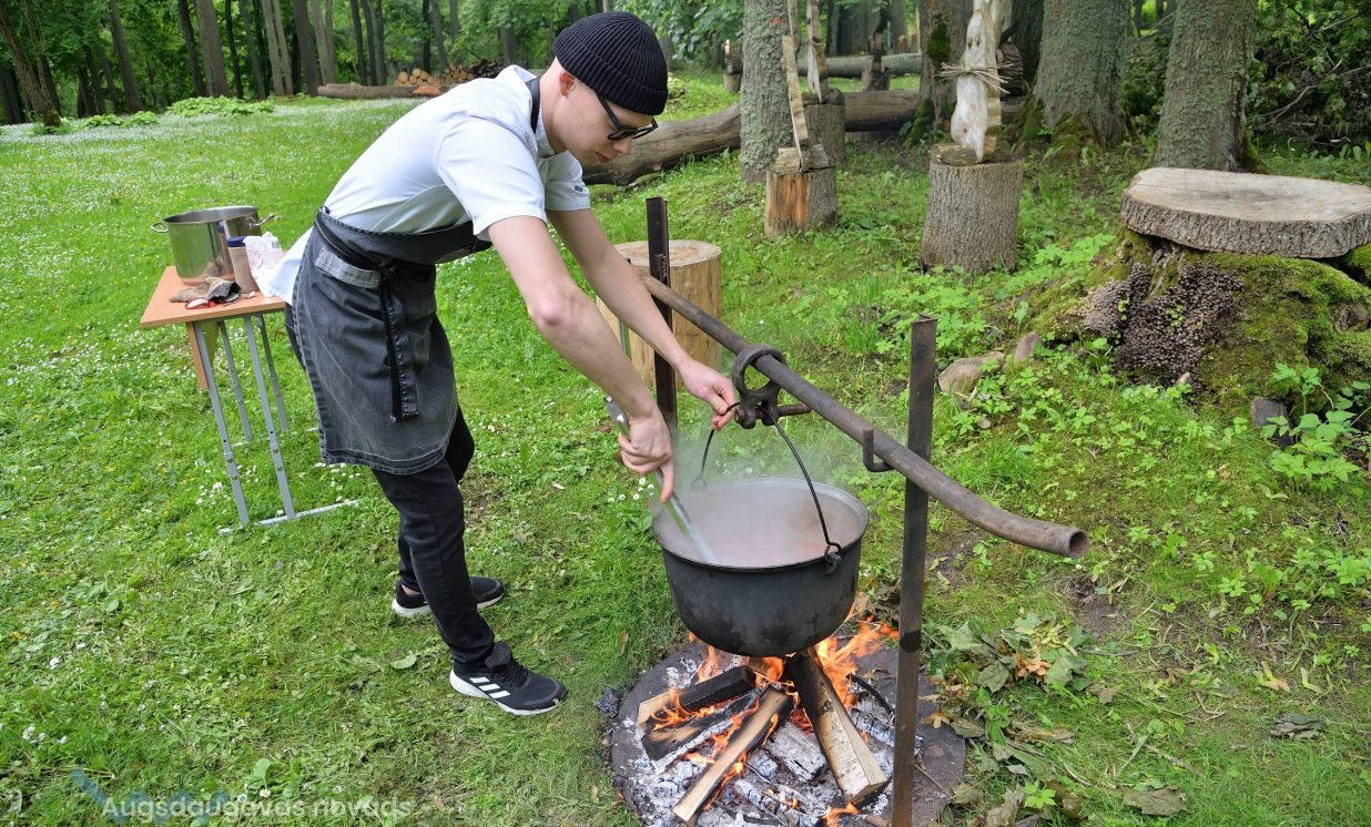 Vienmēr smaidīgs un sirsnīgs – tāds ir kalupietis Haralds Saušs, kuram piemīt īpašs talants aizraut klātesošos un pārsteigt arī ar kādu pavārmākslas šedevru. Vērot pavāra rosīšanos pie katliem ir aizraujoši, jo darbošanos ar virtuves piederumiem un produktiem puisis lieliski apvieno ar kādu jautru stāstu. Saulgriežu laikā viņš uz mirkli iegriezās dzimtajā pusē, lai novadītu meistarklasi pasākuma apmeklētājiem Vabolē.