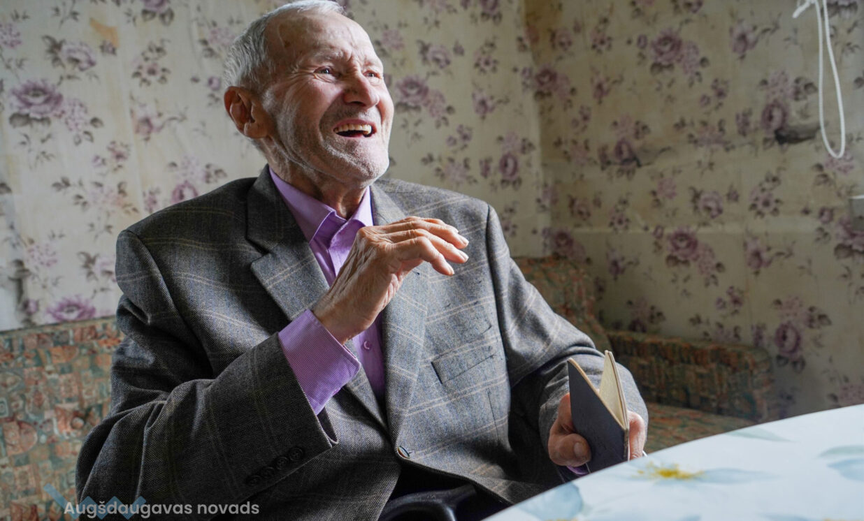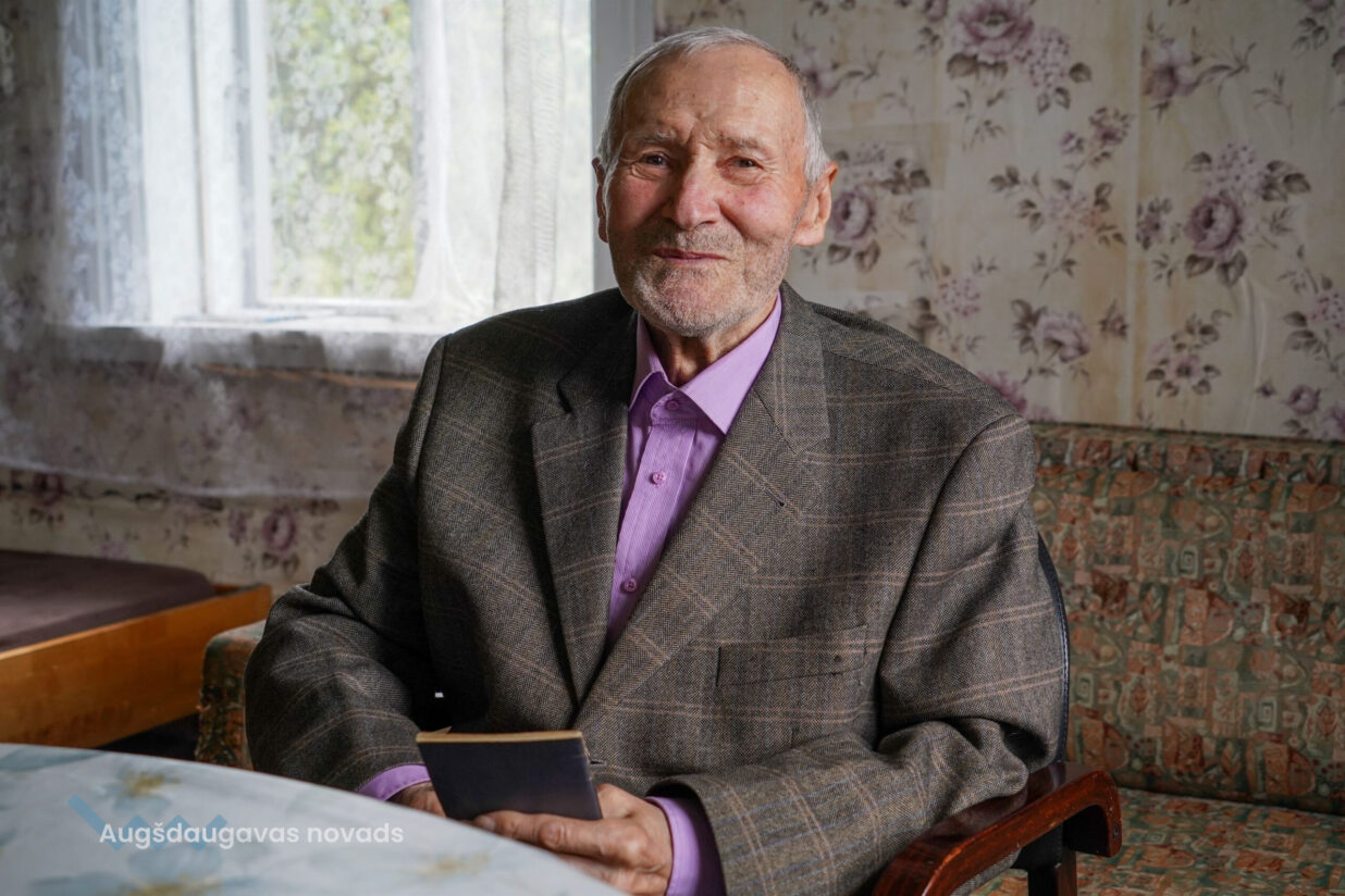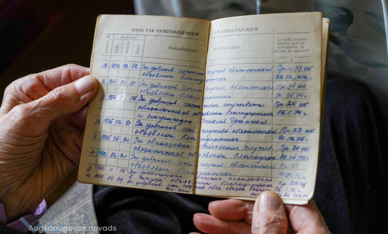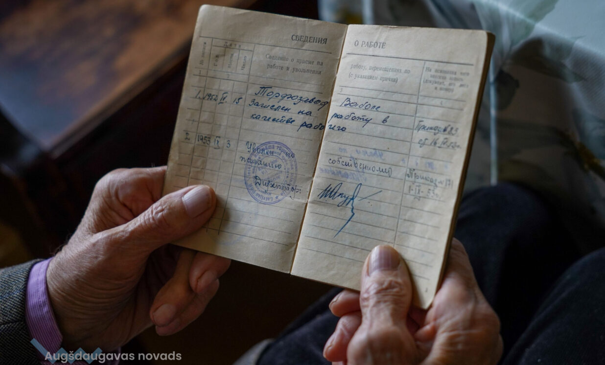 Viņš izvelk no azotes savu darba grāmatiņu, kas pilna ierakstiem. “Jātur tuvāk pie sirds, lai būtu darba spars. Tur visi mani darbi un nedarbi,” joko jubilārs. Pirmais ieraksts datēts ar 1952. gada aprīli, kad viņš iestājies darbā Vaboles kūdras fabrikā par parastu strādnieku.