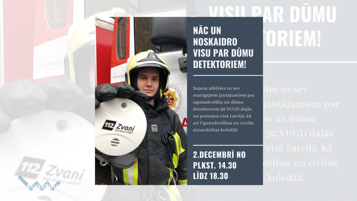 2.decembrī, tieši 30 dienas pirms stāsies spēkā Ugunsdrošības noteikumu prasība, kas nosaka, ka visos mājokļos jābūt uzstādītiem dūmu detektoriem, Valsts ugunsdzēsības un glābšanas dienests (VUGD) aicina ikvienu iedzīvotāju, kuram ir jautājumi par ugunsdrošību un dūmu detektoriem, doties uz jebkuru no 92 VUGD daļām un posteņiem visā Latvijā, kā arī Ugunsdrošības un civilās aizsardzības koledžu, un saņemt konsultāciju.