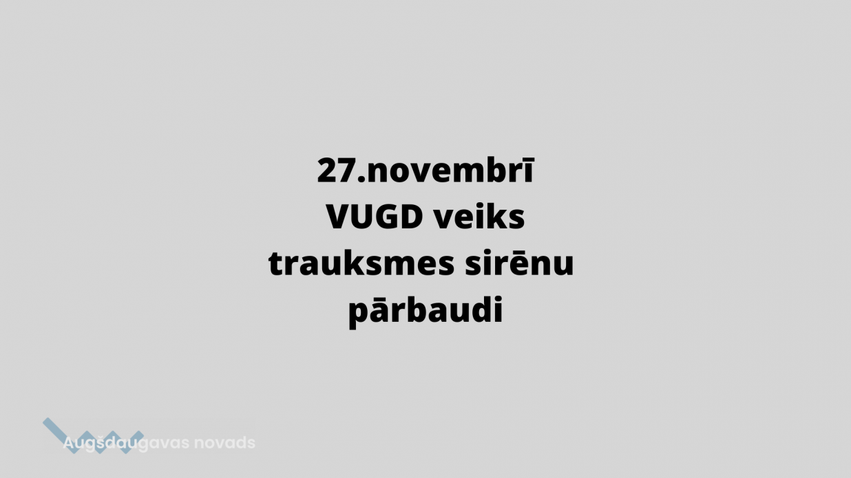 27.novembrī no plkst.10.00 līdz plkst.10.20 visā valstī, izņemot Ventspils pilsētu, tiks iedarbinātas trauksmes sirēnas uz trim minūtēm, bet Ventspilī sirēnu pārbaude notiks no plkst. 10.30 līdz plkst. 10.40. Nākam trešdien iedzīvotājiem nav pamata uztraukumam, jo tā ir kārtējā trauksmes sirēnu pārbaude. Gadījumā, ja trauksmes sirēnu pārbaudes laikā tās nedzirdat, nesatraucieties, jo ārkārtas gadījumos tiks izmantoti arī citi apziņošanas veidi, piemēram, informācijas nodošana pa skaļruņiem. VUGD aicina viesnīcu administrāciju informēt savus ārvalstu viesus par gaidāmo trauksmes sirēnu pārbaudi, lai nerastos lieki uztraukumi.