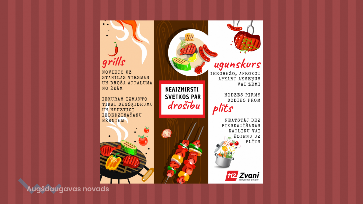 Brīvdienās meteorologu prognozētie siltie laikapstākļi cilvēkus mudinās arī uzsākt grila sezonu. Aicinām iedzīvotājus, kurinot grilus, būt uzmanīgiem un neaizmirst, ka dārzu un privātmāju pagalmos grils ir jānovieto uz stabilas virsmas un drošā attālumā no ēkām, lai, uzpūšot stiprākam vējam, dzirksteles nevarētu izraisīt ugunsgrēku. Iekurinot grilu, ir jāizmanto tikai tie degšķidrumi, kuri ir paredzēti šim mērķim, nevis, piemēram, benzīns vai acetons, jo, tam uzliesmojot, cilvēks var gūt smagus apdegumus. Pirms grila aizdedzināšanas, kurināmais jāaplej ar degšķidrumu, jāpagaida, kamēr tas sasūksies un tikai tad uzmanīgi jāaizdedzina. Līdztekus VUGD aicina grila iededzināšanu nekādā gadījumā neuzticēt bērniem, jo pat pieaugušo klātbūtnē viņiem to darīt var būt bīstami.