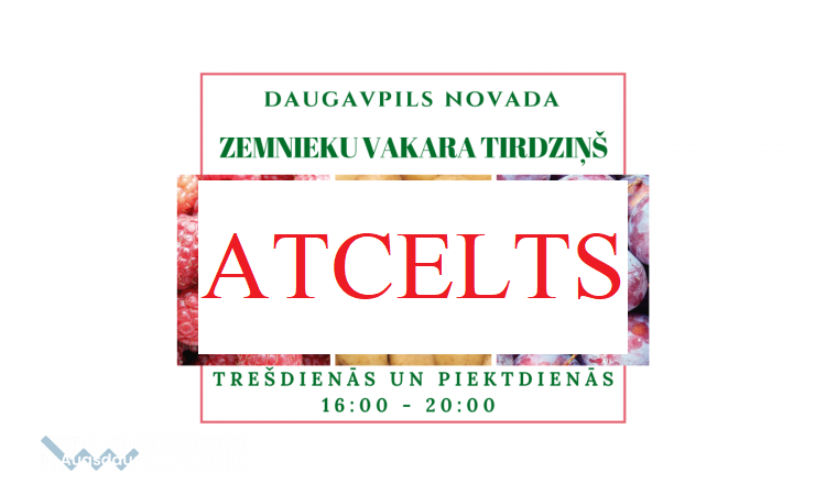 Informējam, ka sakarā ar izsludināto Ārkārtas stāvokli, Zemnieku vakara tirdziņa norise apturēta no 14. marta līdz 14. aprīlim!