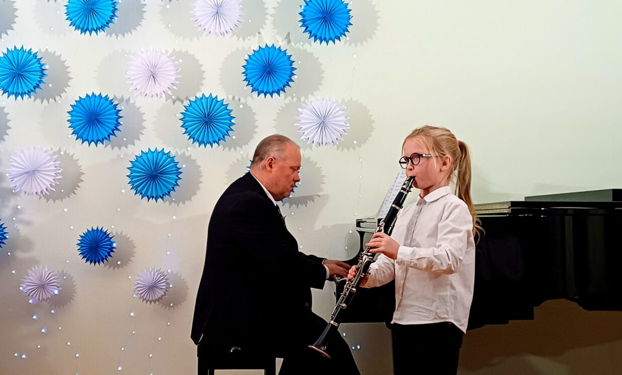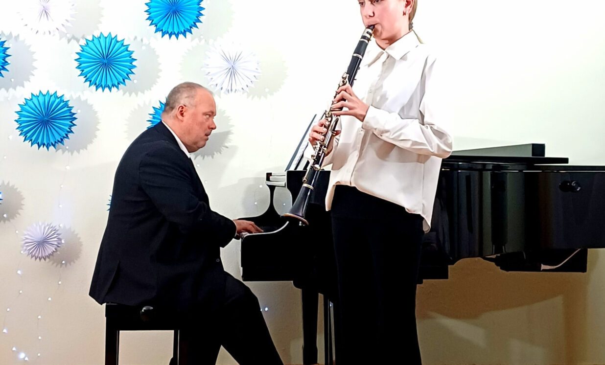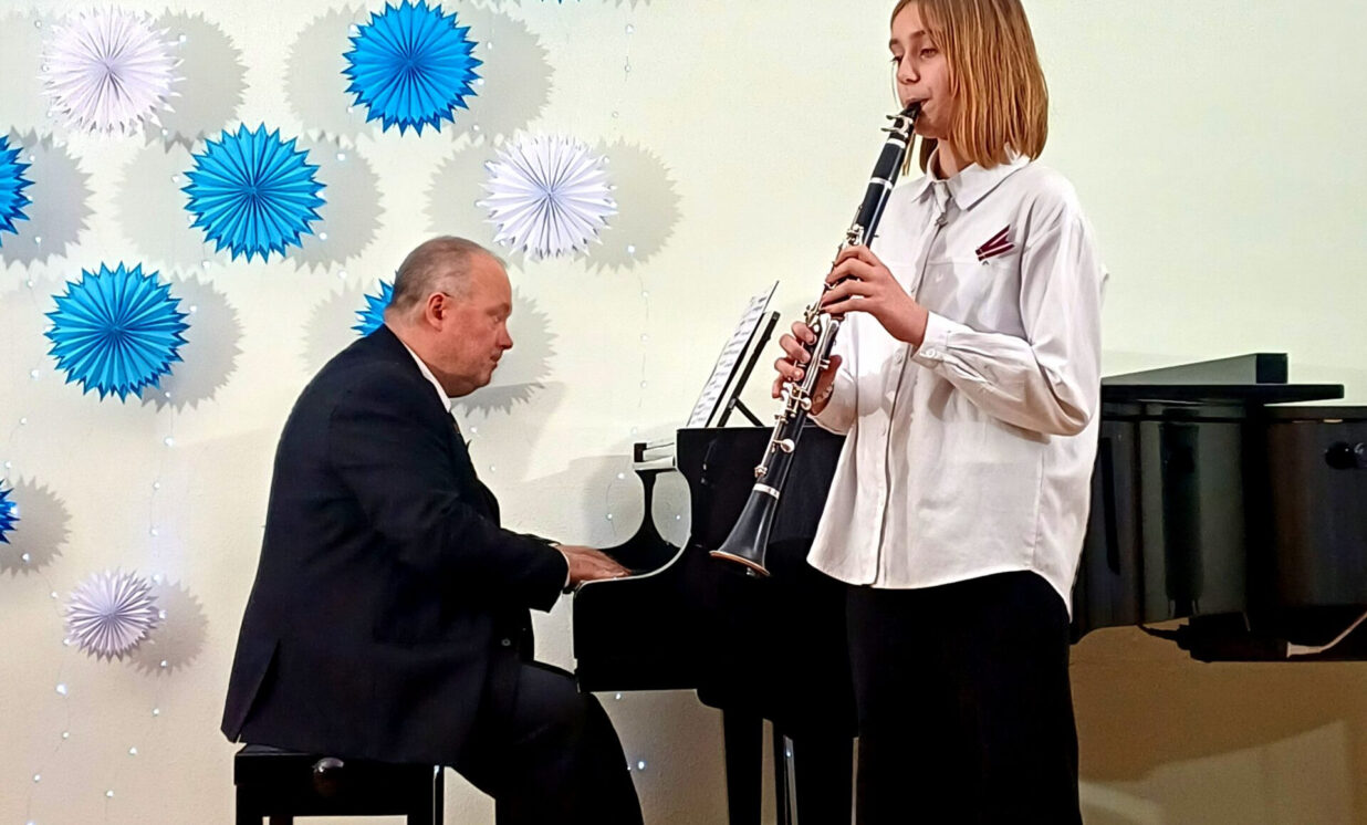 5.klases audzēknes – Agata Golovane (klarnete) un Darja Saidova (klavieres);