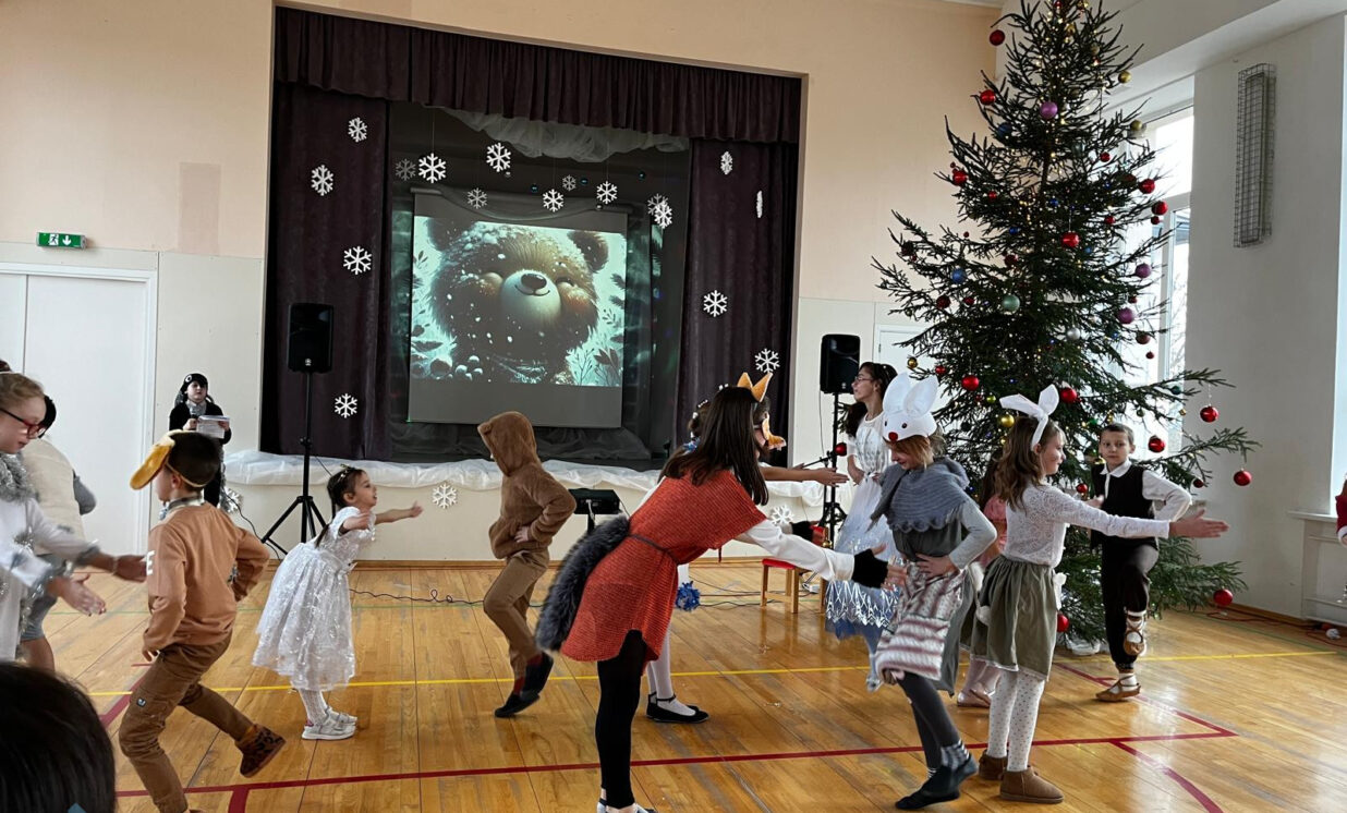 Mazajām zvaigznītēm (pasākuma vadītājiem) ļoti paveicās, jo viņas šeit sastapa gudro Kraukli, kurš dažādos veidos mēģināja organizēt tālo viešņu nokļūšanu atpakaļ mājās. Atbildīgajā darbā iesaistījās arī Lapsa, Vilki, Lācēns… Kas tik nebija jāpiedzīvo jaunajiem draugiem – gan jāsauc palīgā mazās pirmsskolas pelītes, gan rūķīšu un zaķēnu komandas, gan jāmeklē atbildes speciālos izglītojošos raidījumos un Ziemassvētku ziņu speciālizlaidumos, gan atkal tradicionāli jāmēģina neuzķerties uz Grinča viltībām, gan jāstājas pretī Putenim un viņa nebēdnīgajiem draugiem. To visu varēja paveikt tikai katras klases pasaku tēliem atrādot savu sagatavoto priekšnesumu. Viss beidzās laimīgi, un tālās viešņas nokļuva mājās – izrādās, pat lielākie palaidņi labojas un palīdz kopīgā lietā, ja darbam cauri vijas skanīgas dziesmas un raits dejas solis!