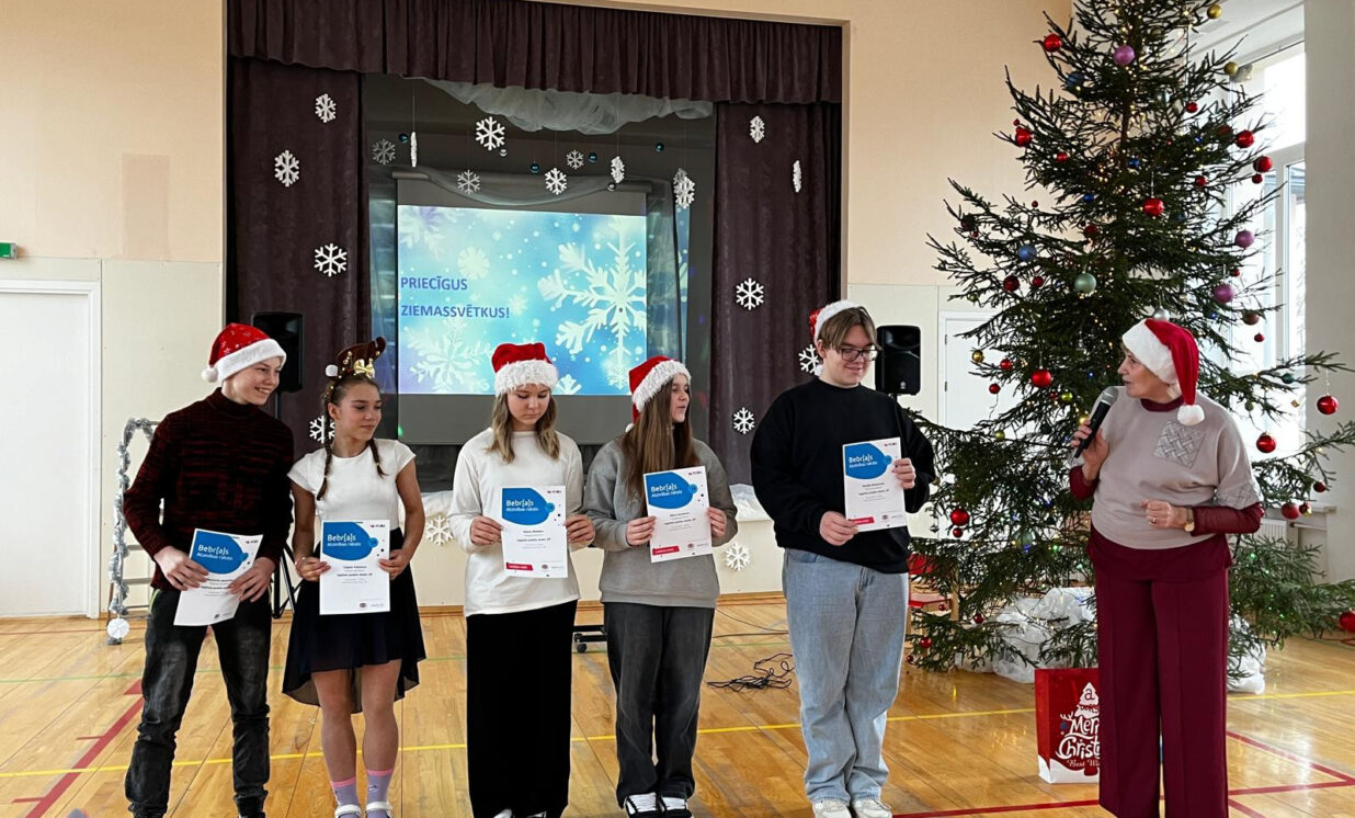 Ziemassvētku pasākumā šogad nesuminājām ar Pateicībām 1. semestra labiniekus, jo ienākuši grozījumi mācību sasniegumu vērtēšanas kārtībā ar jaunieviesto vērtējumu svēršanu. Labi, ka Lielais Rūķis centīgākos skolēnus aicināja no sava burvju maisa pašrocīgi izvilkt kādu brīnumiņu.