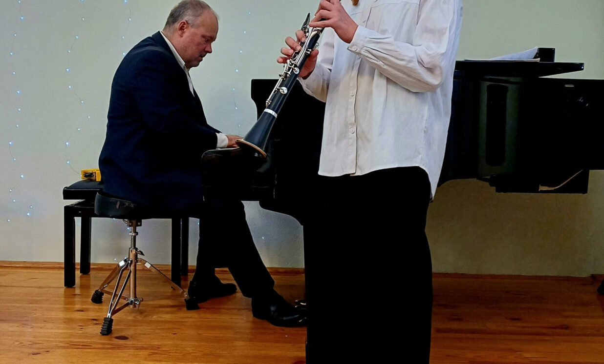 2. klases audzēkņi – Jana Černova (klarnete), Andrejs Stoļarovs (akordeons), Alina Peļušonoka (klavieres), Damirs Mirencovs (trompete), Nika Grigorjeva (klarnete);